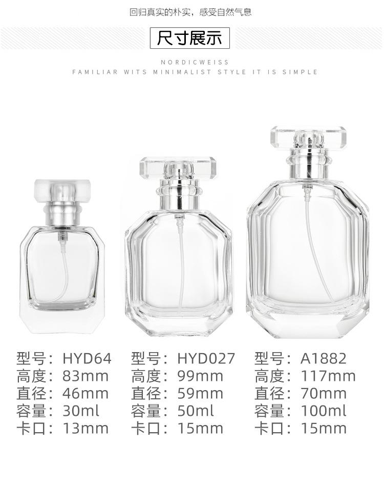 Venta al por mayor en stock, botella de perfume de vidrio vacía, 30 ml, 50 ml, 100 ml, subenvasado de perfume, botella vacía, botella de vidrio con atomizador de bayoneta