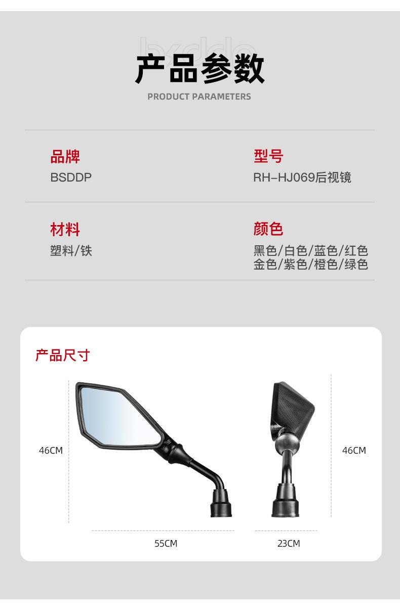 BSDDP espejo retrovisor de motocicleta reflector de coche eléctrico espejo retrovisor HD de vista amplia universal en stock transfronterizo