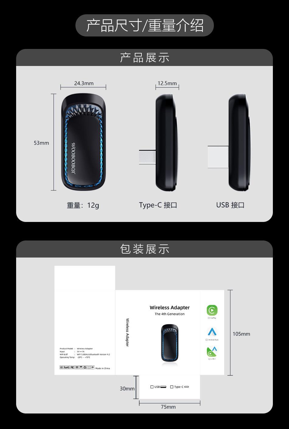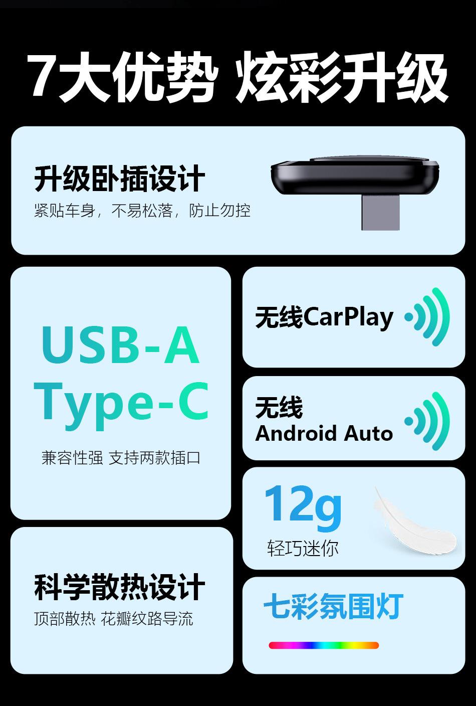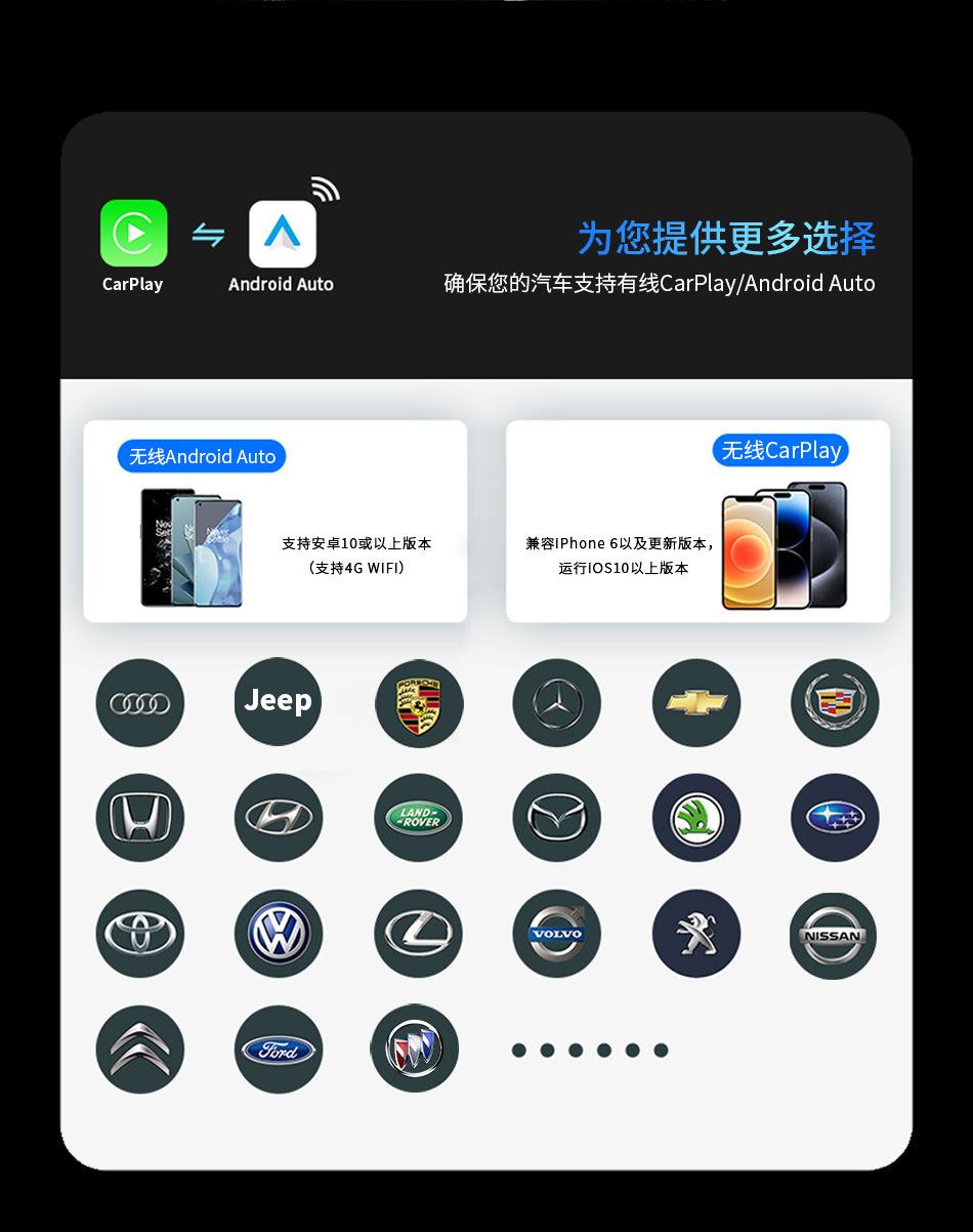 Caja Inalámbrica Original para Coche con Cable Transfronteriza Apple Carplay Android Auto Convertidor de Interconexión Coche-Máquina