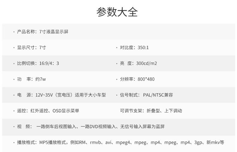 UniversalPantalla de interfaz AV para coche de 7 pulgadas(Voltaje de banda ancha de 12 V-36 V, adecuado para automóviles, camiones de 12 a 24 V, minibuses y autobuses)