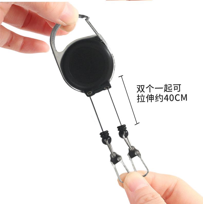 Hebilla de doble cabeza de fácil extracción, hebilla telescópica para tarjeta de identificación, hebilla para colgar tarjetas de trabajo, cordón con pegamento, clip telescópico para insignia, fabricantes al por mayor