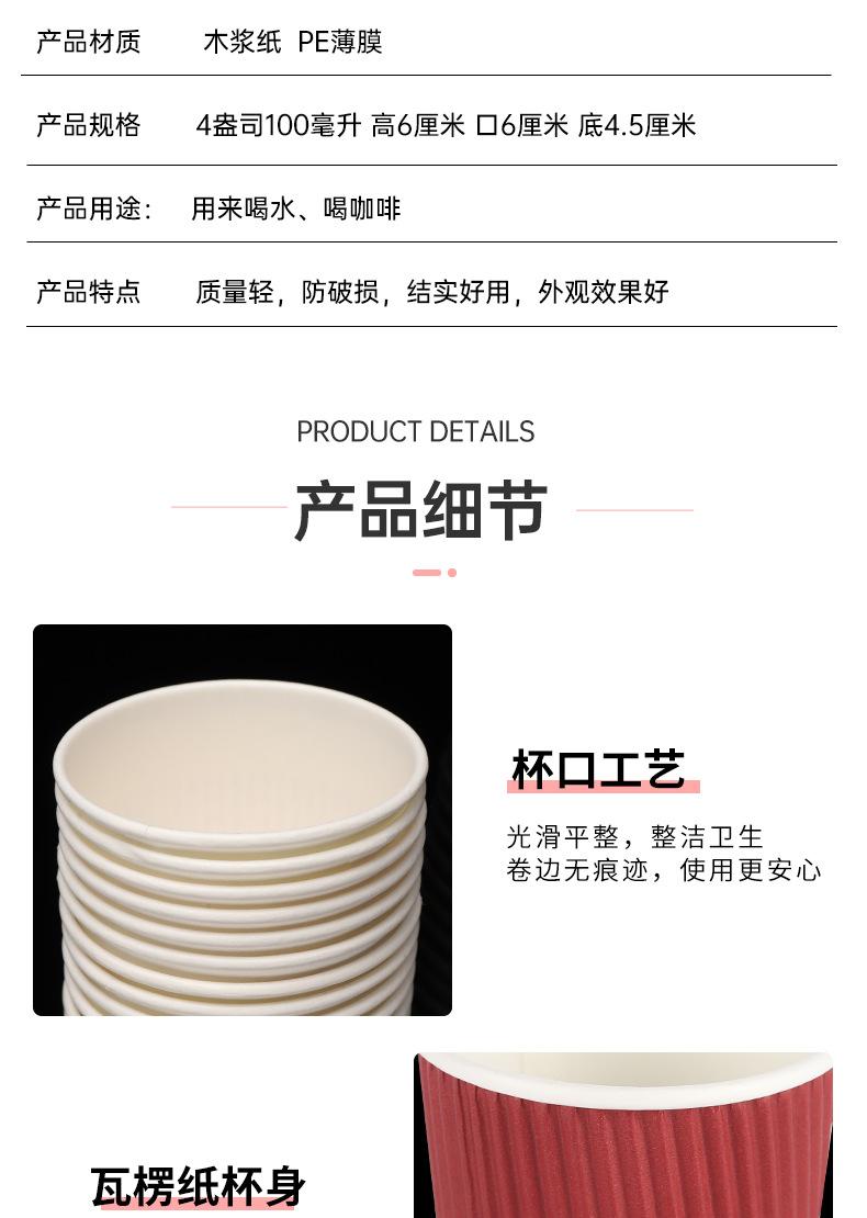 Vaso de papel pequeño de 100 ml y 4 oz, vaso desechable para café, vaso hueco grueso, vaso desechable de papel corrugado