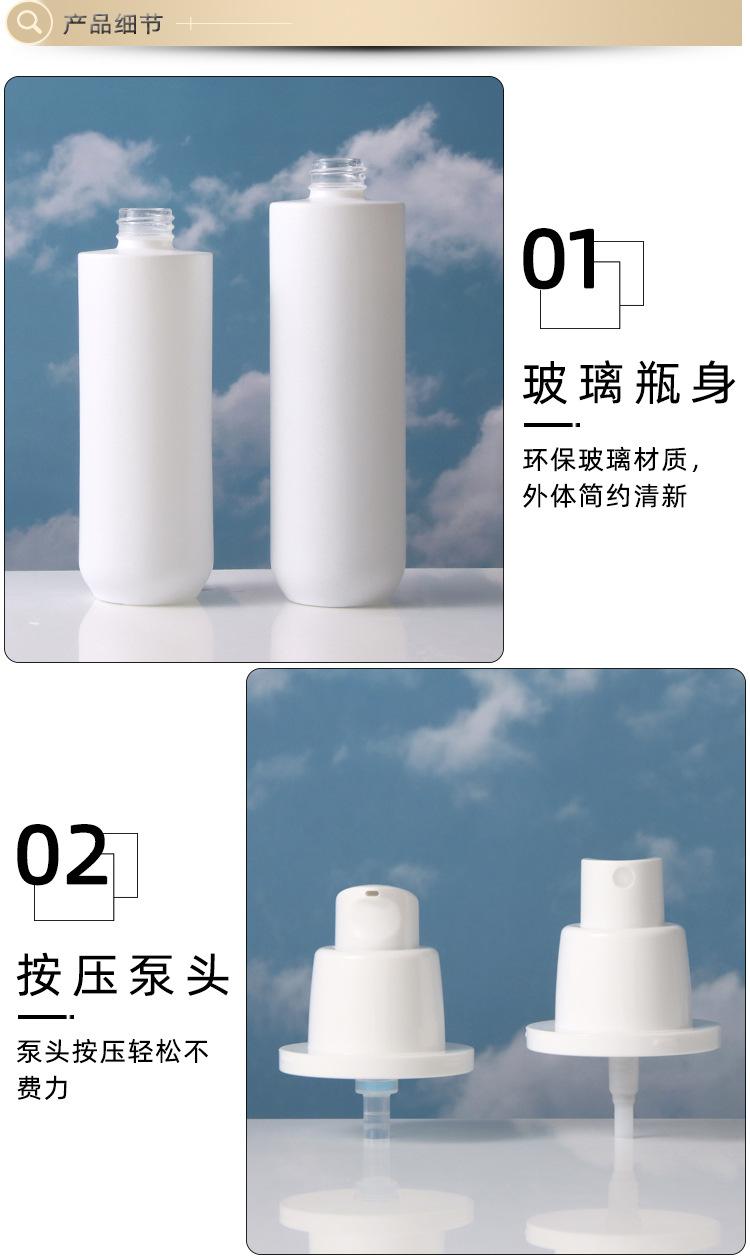 120ml white lotion pump-matte white bottle with matte white cap; hanfei series; glass, 120ml white spray pump-...