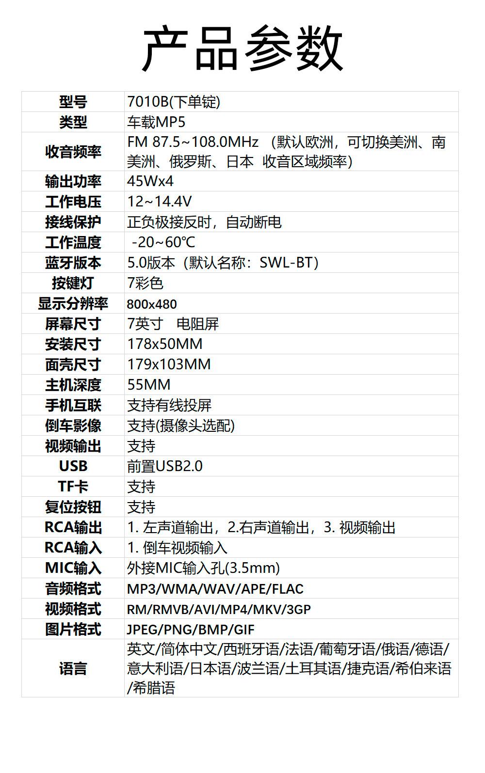 Reproductor MP5 Bluetooth para coche de 7 pulgadas con pantalla grande HD y radio con control centralizado para coche con imagen de marcha atrás