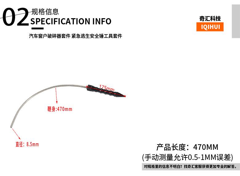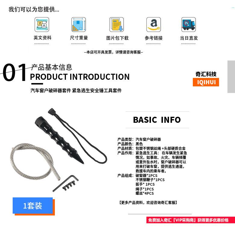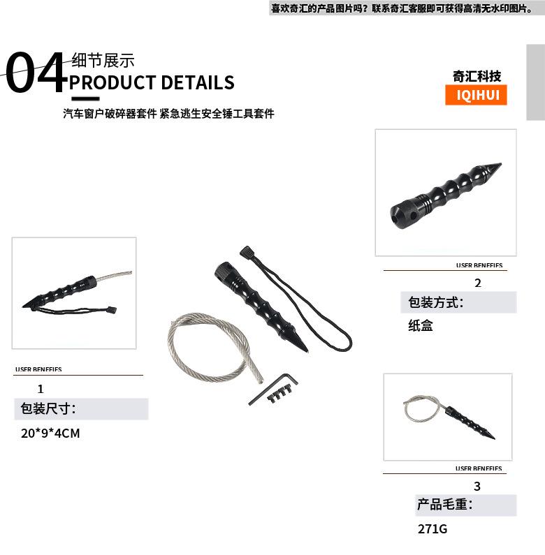 Kit de herramientas de martillo de seguridad para escape de emergencia, rompeventanas de automóviles de venta caliente transfronteriza, látigo de alambre de autodefensa, rompeventanas