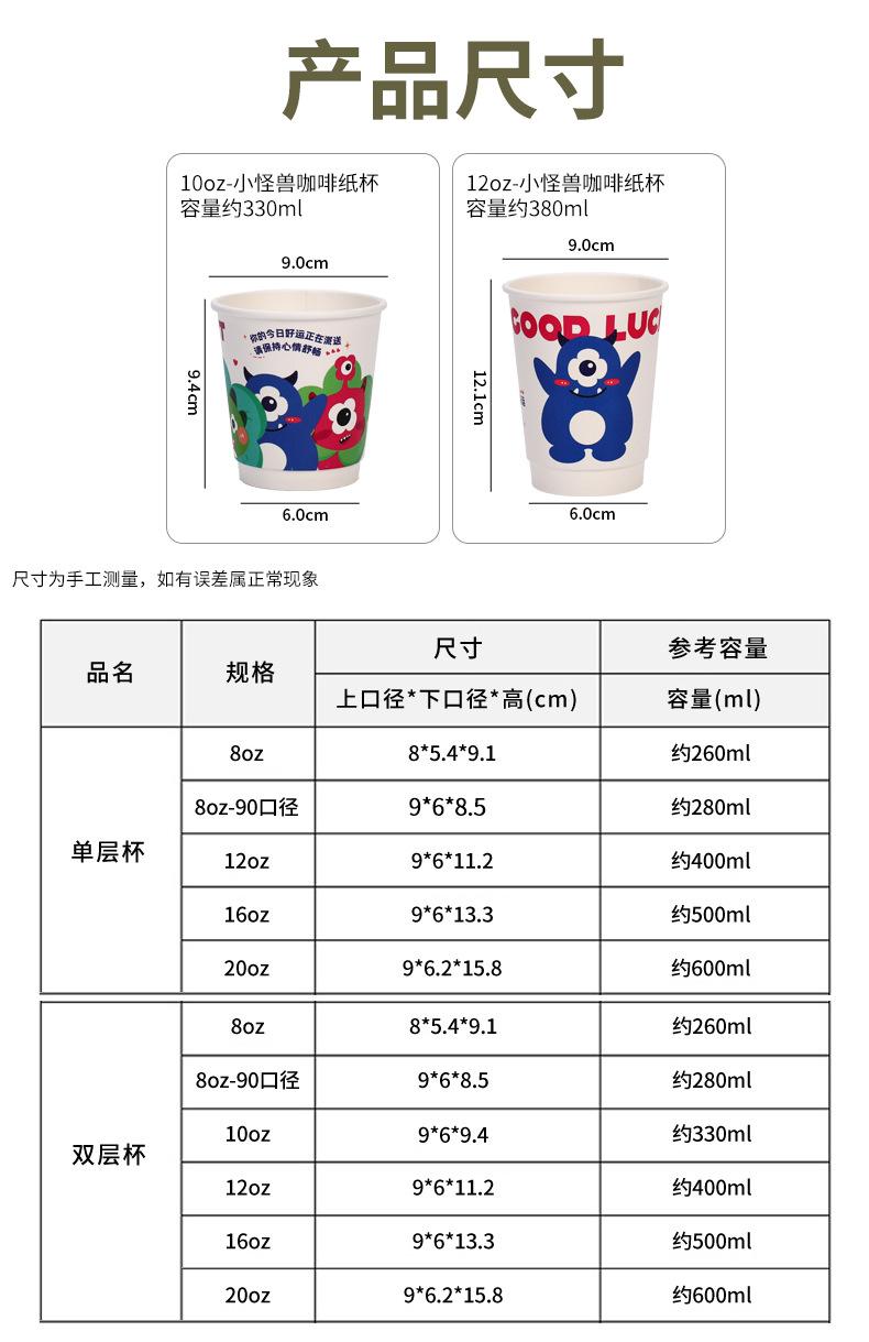330ml paper cup +25 sets of black U-shaped cover; Source factory, support customization