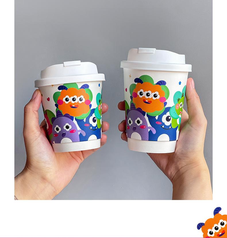 Taza de café creativa y bonita, desechable, de papel para leche, té y para llevar, con tapa, comercial, de papel con doble revestimiento.