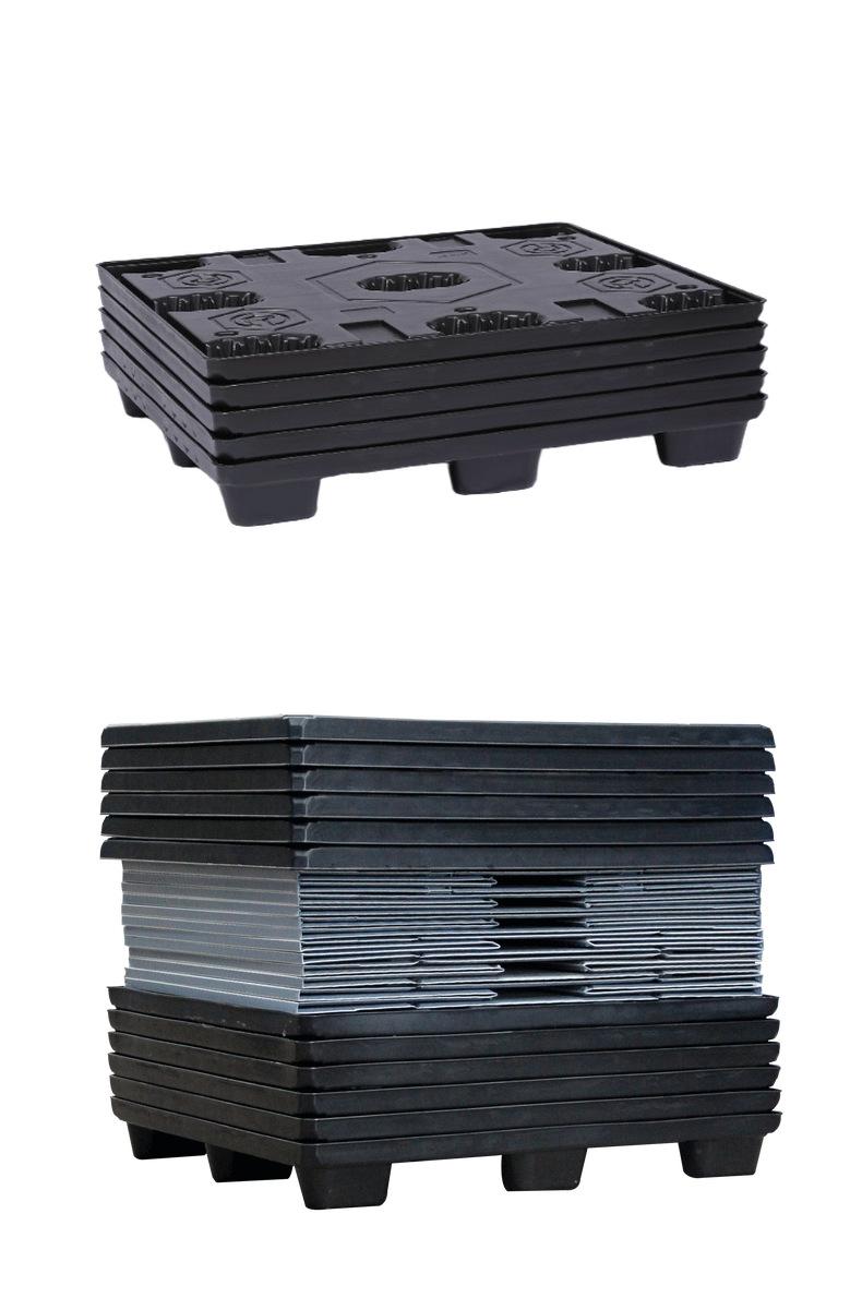 Caja de grúa de moldeo por soplado de HDPE Resco con soporte para cubierta Tiandi, bandeja de alta capacidad de carga para ciclo logístico negro