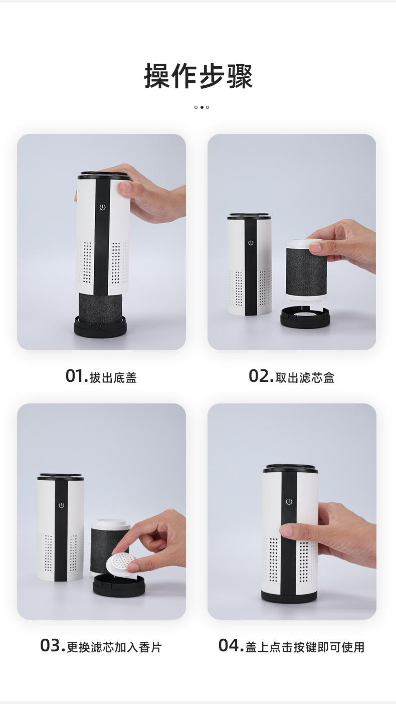| Configuración estándar del producto: | Purificador una unidad Cable de datos uno Manual en chino e inglés una copia, Tableta de aroma una | ||