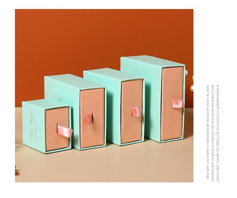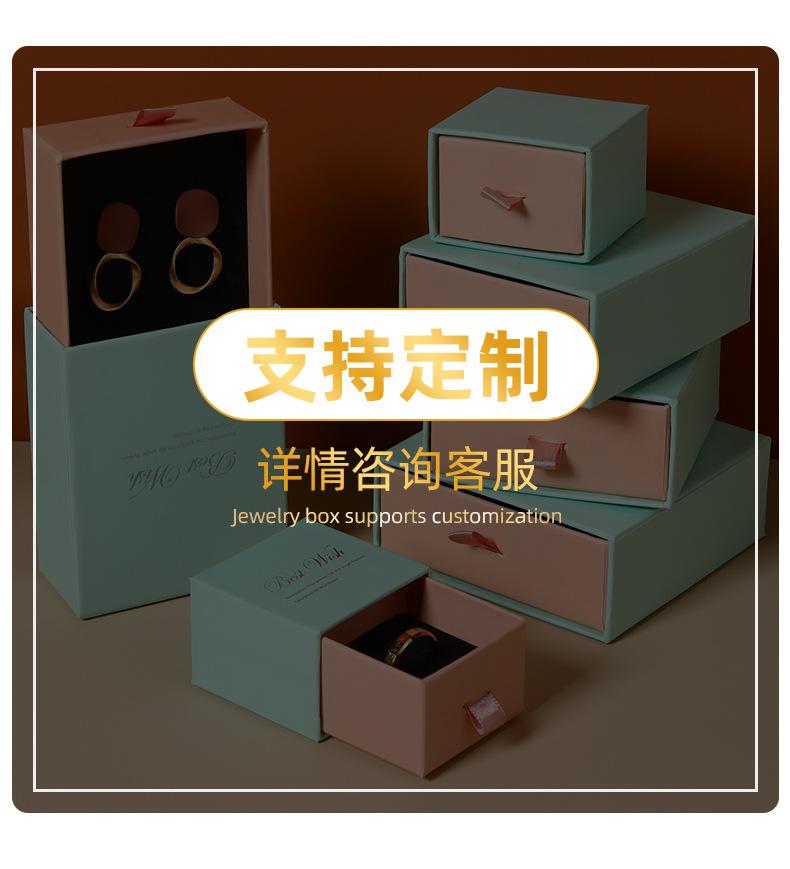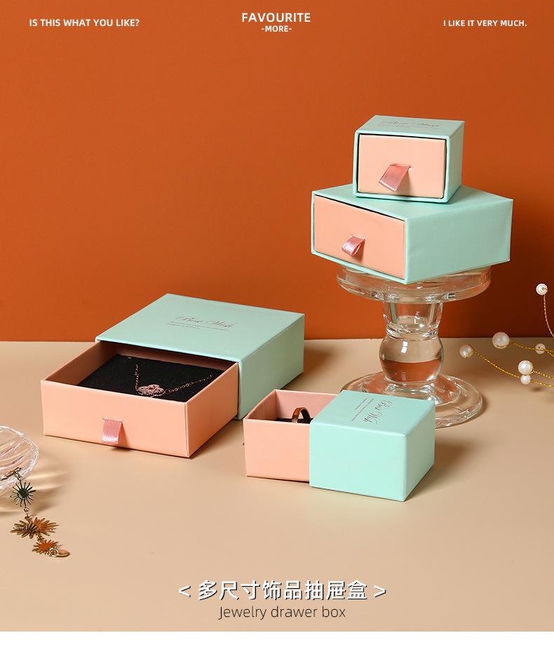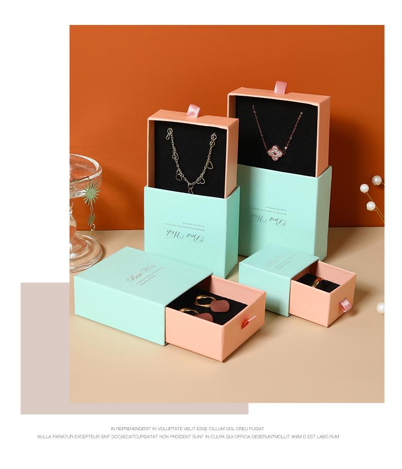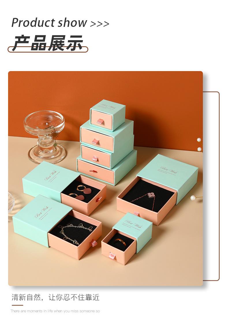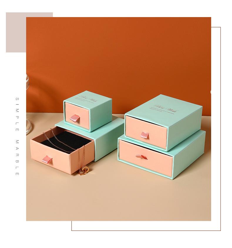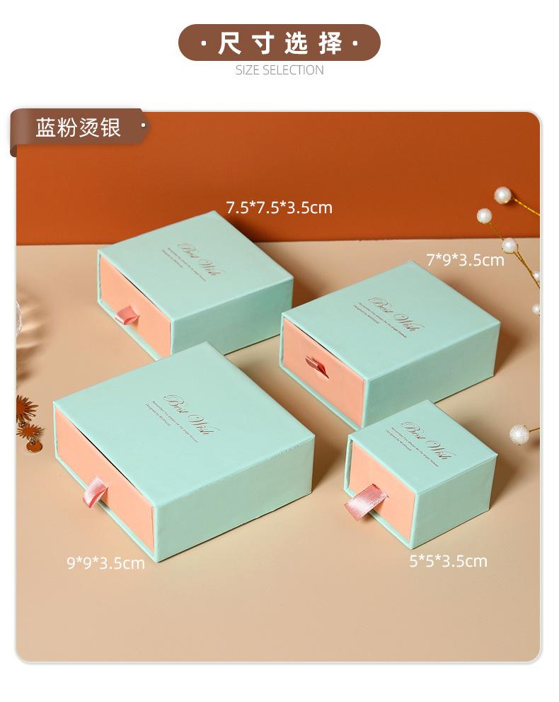 Caja de almacenamiento de joyas exquisitas en azul y rosa al por mayor de fábrica, caja de cajón para empaquetar anillos, collares, pulseras y pendientes.