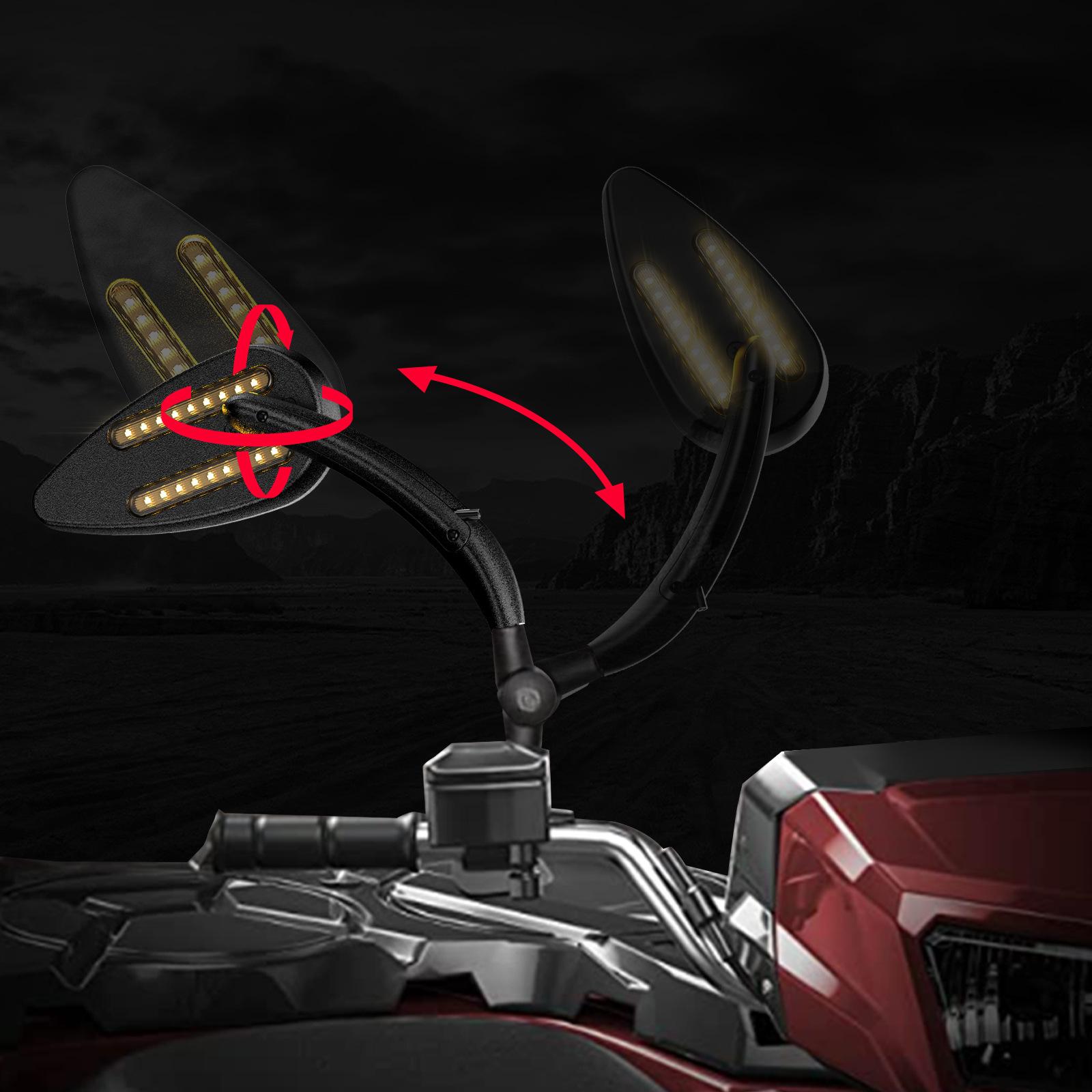 Flyquick Es Adecuado para Harley Led Motocicleta Negro Espejo Retrovisor con Luz Plata Espejo Retrovisor Universal