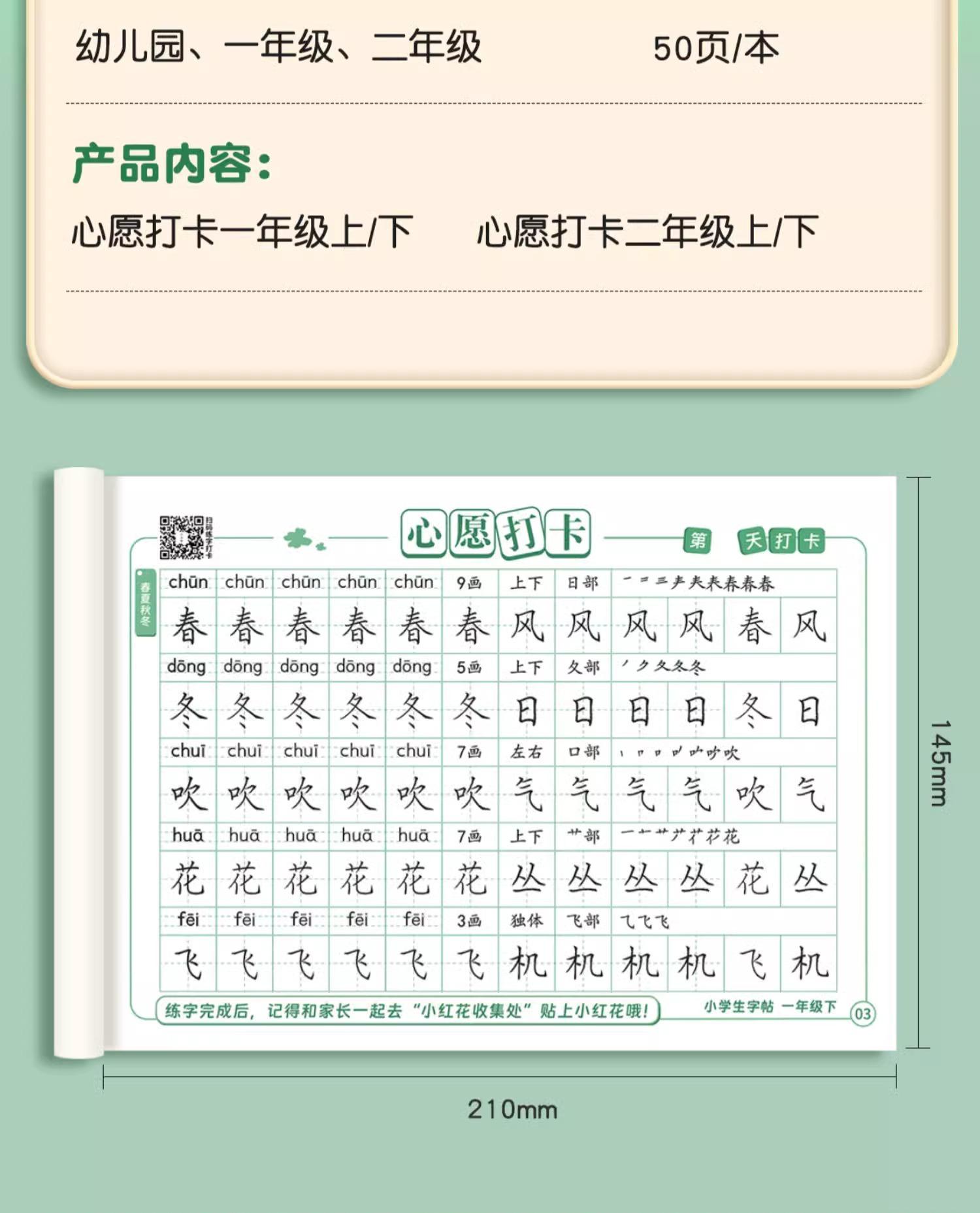 2025 Edición Educación Popular Chino Liupintang Deseo Registro Práctica Cuaderno Primer y Segundo Grado Volumen 1 y 2 Cuaderno Estudiantes de Primaria