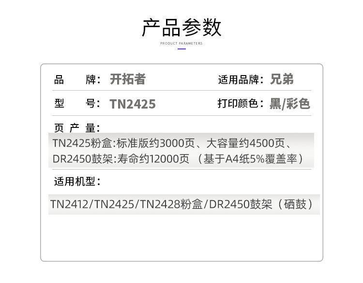 Cartucho de tóner Brother 2595D TN2425 compatible, cartucho de tinta 7195DW, cartucho de tóner MFC7895DW DR2450.