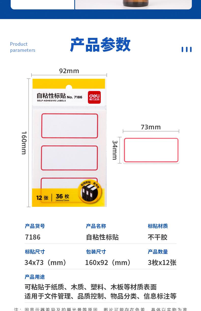Deli 7186 Etiqueta Autoadhesiva (Blanco) 34*73mm (Libro) Papel Adhesivo
