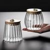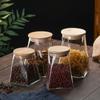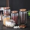 Tarro de vidrio hermético para el hogar, con tapa de bambú, transparente y con relieve para té.