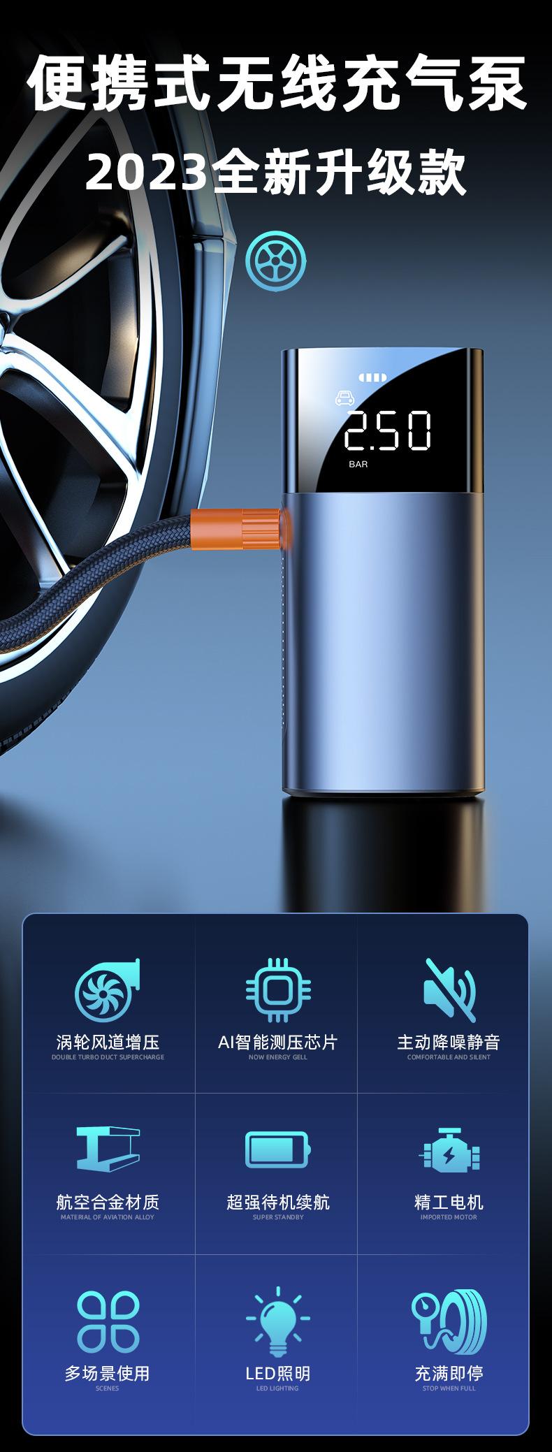 Bomba de aire para coche nueva bomba de aire inalámbrica transfronteriza suplemento de aire para neumáticos de coche bomba de aire eléctrica portátil de alta presión