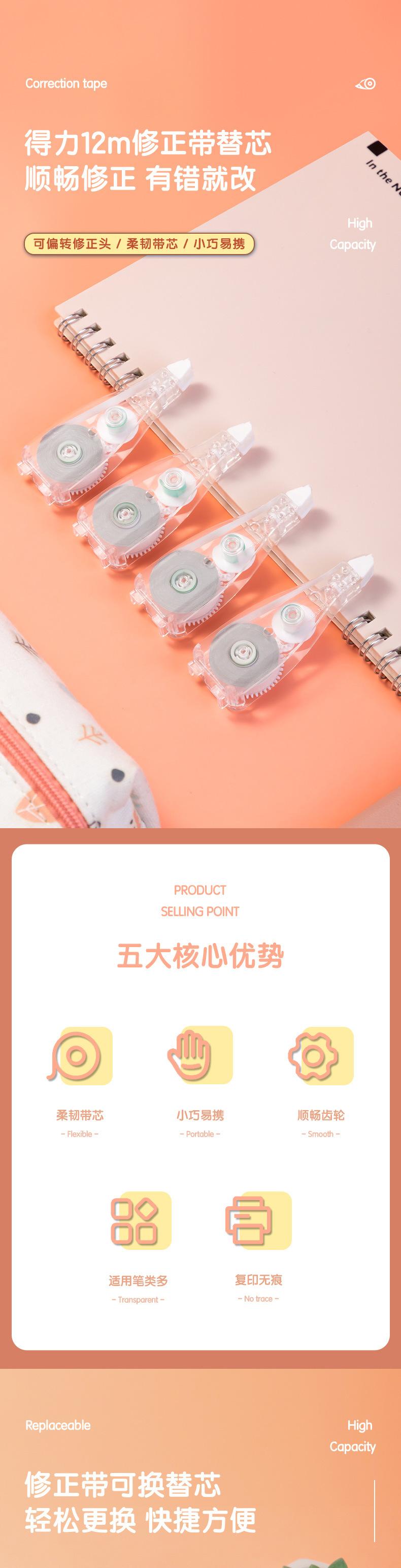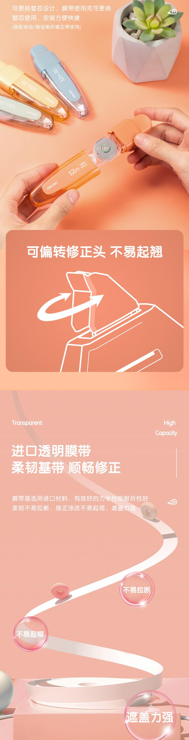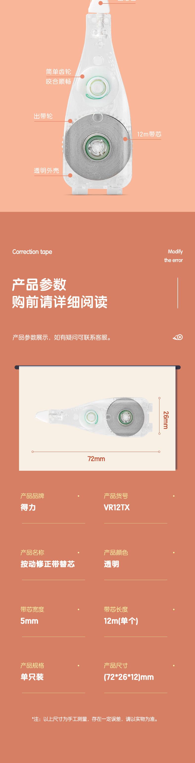 Deli VR12TX cinta correctora recargable tipo bolígrafo de empuje estudiante cinta correctora de gran capacidad cinta correctora empuje recarga