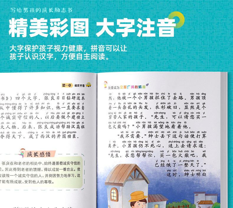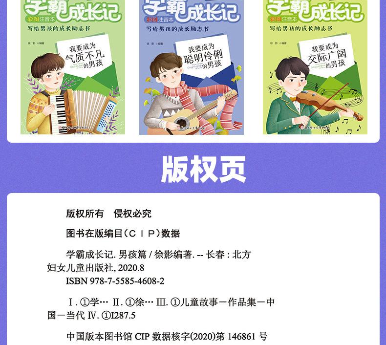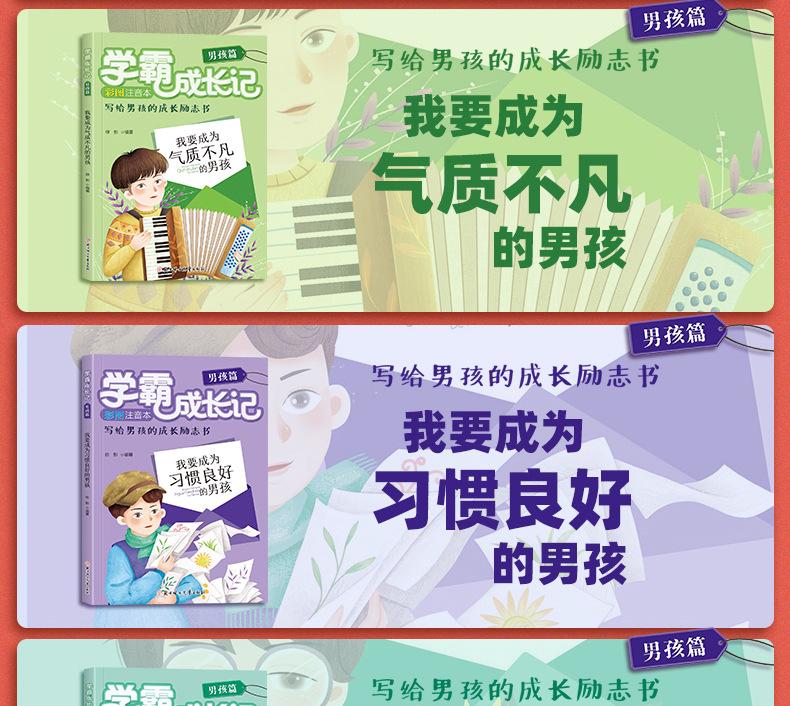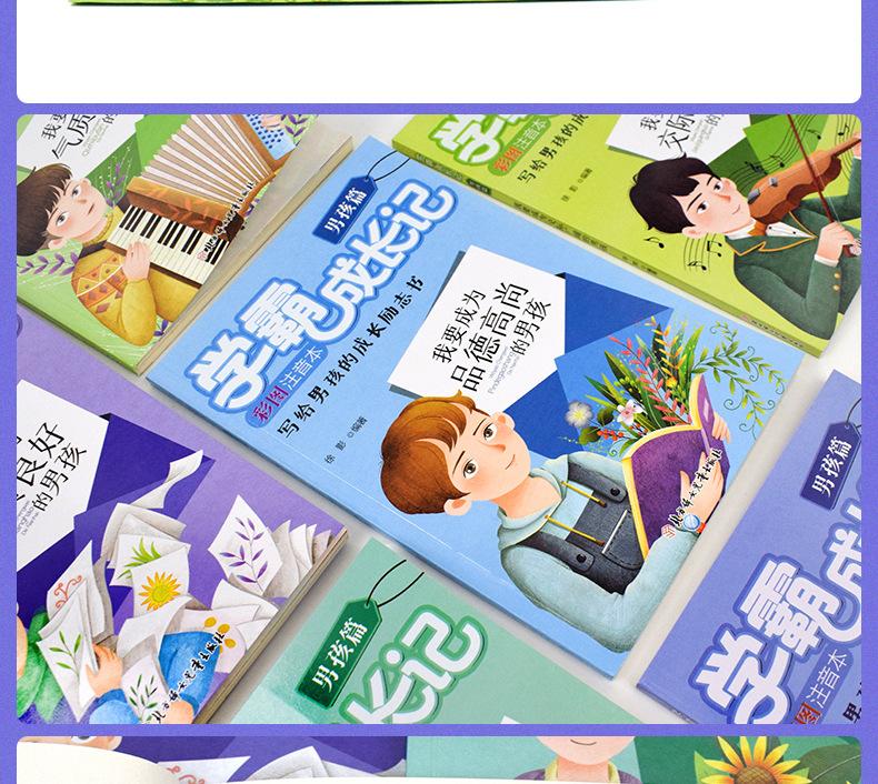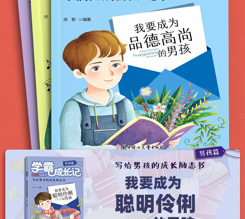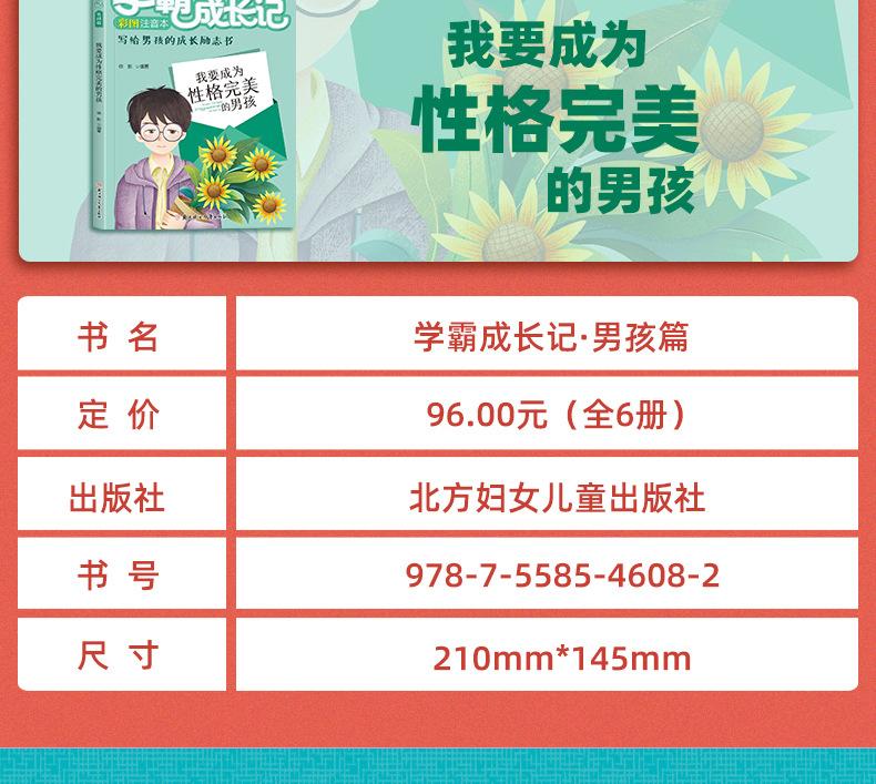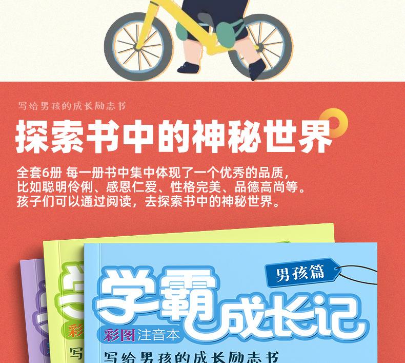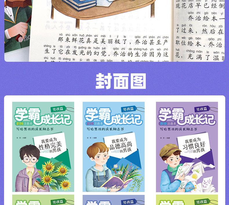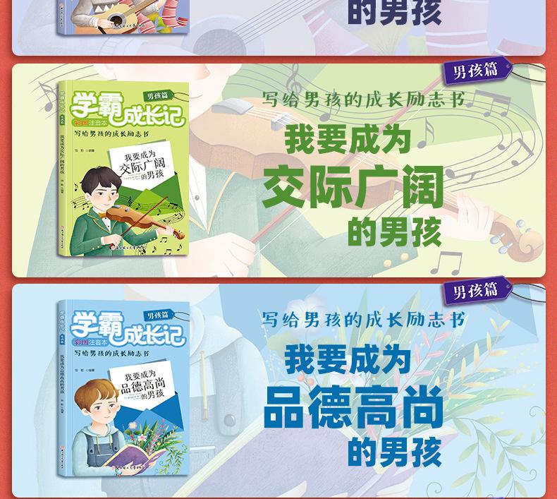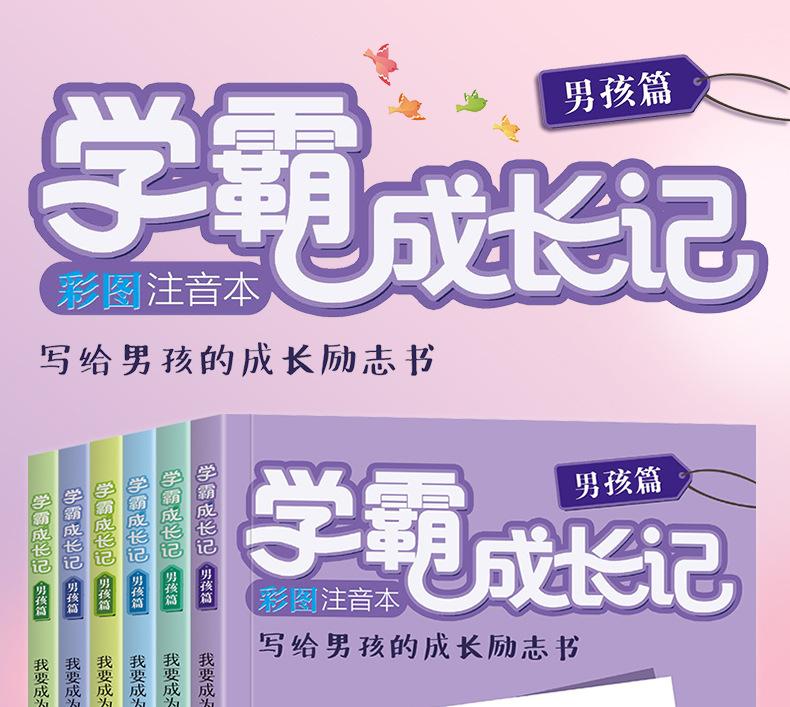 Xueba Growth Notes Boys - 6 materiales de lectura extracurriculares completos para estudiantes de primaria, libros inspiradores del campus, edición Zhuyin