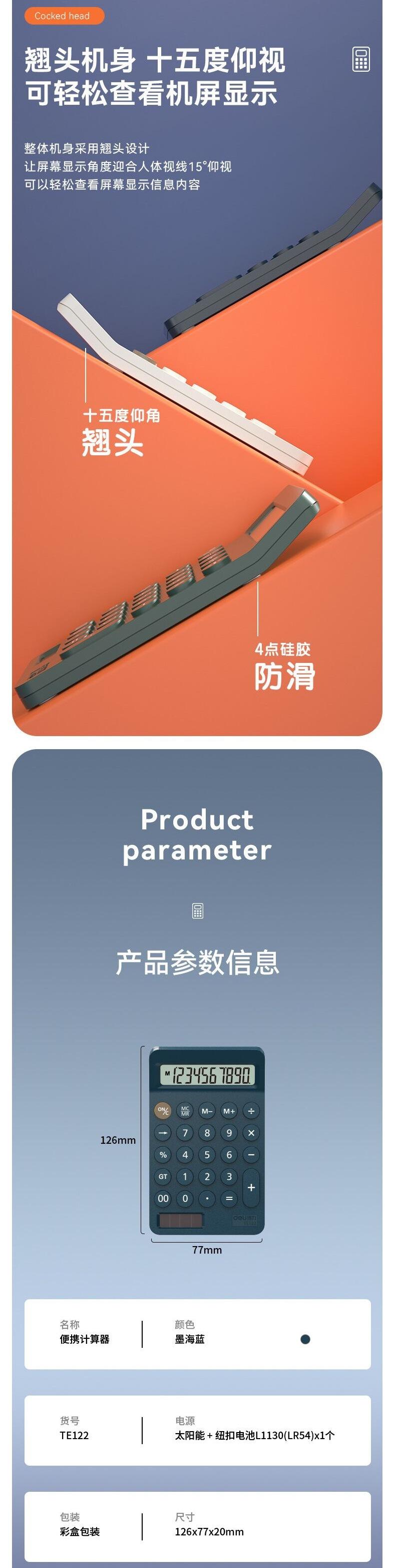 Calculadora portátil Deli TE122 con energía solar dual, portátil, de mano, moderna, multicolor opcional