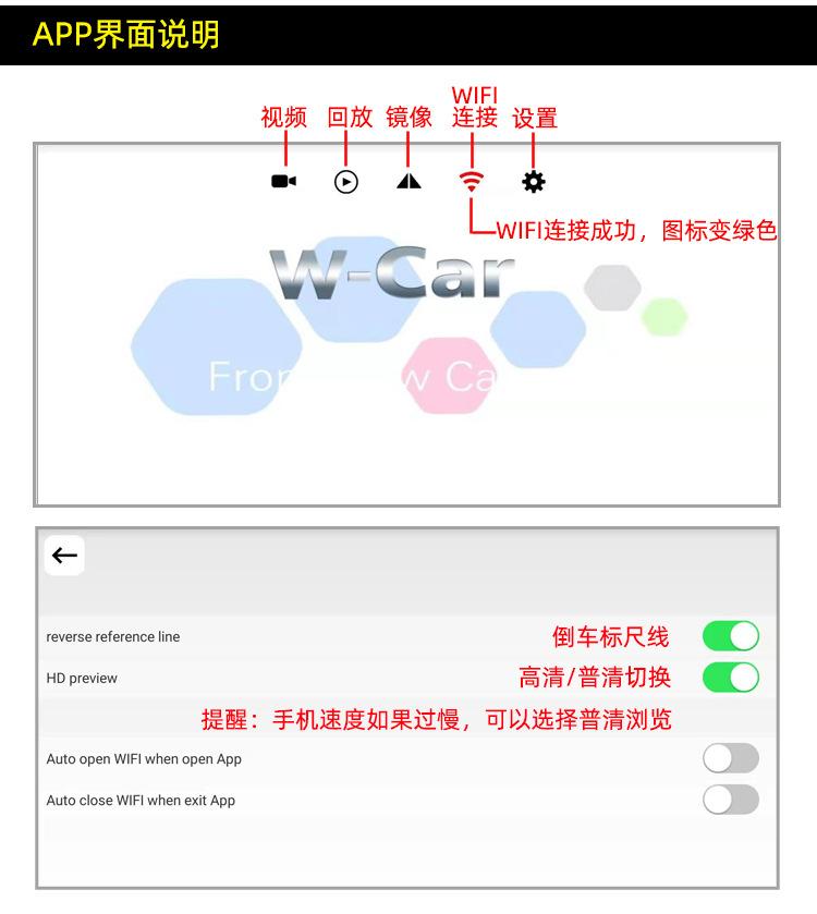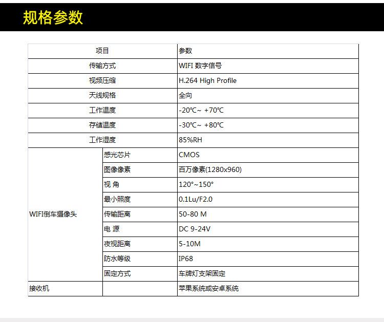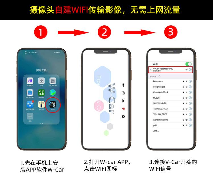 WIFI reverse camera + USB power cord + long card rack LP13