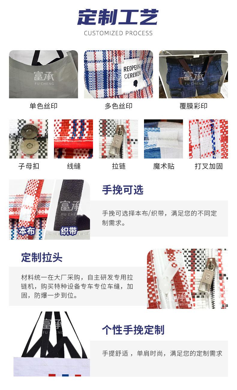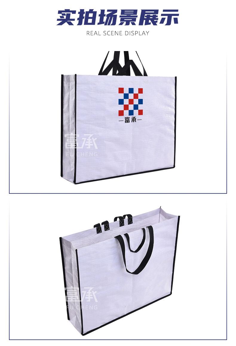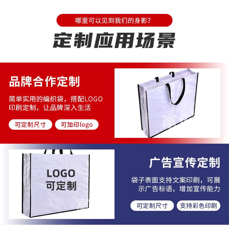 Bolsa tejida de compras plegable de gran capacidad de fábrica para impresión a color de película plástica pp, bolsa publicitaria portátil