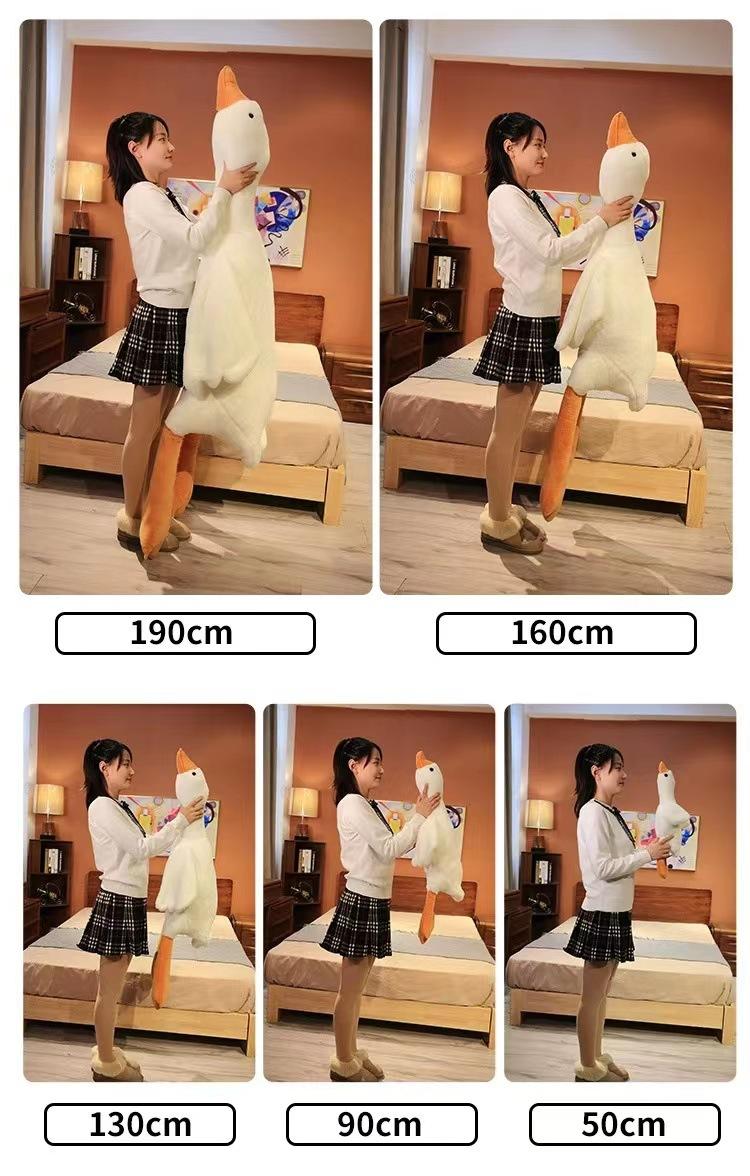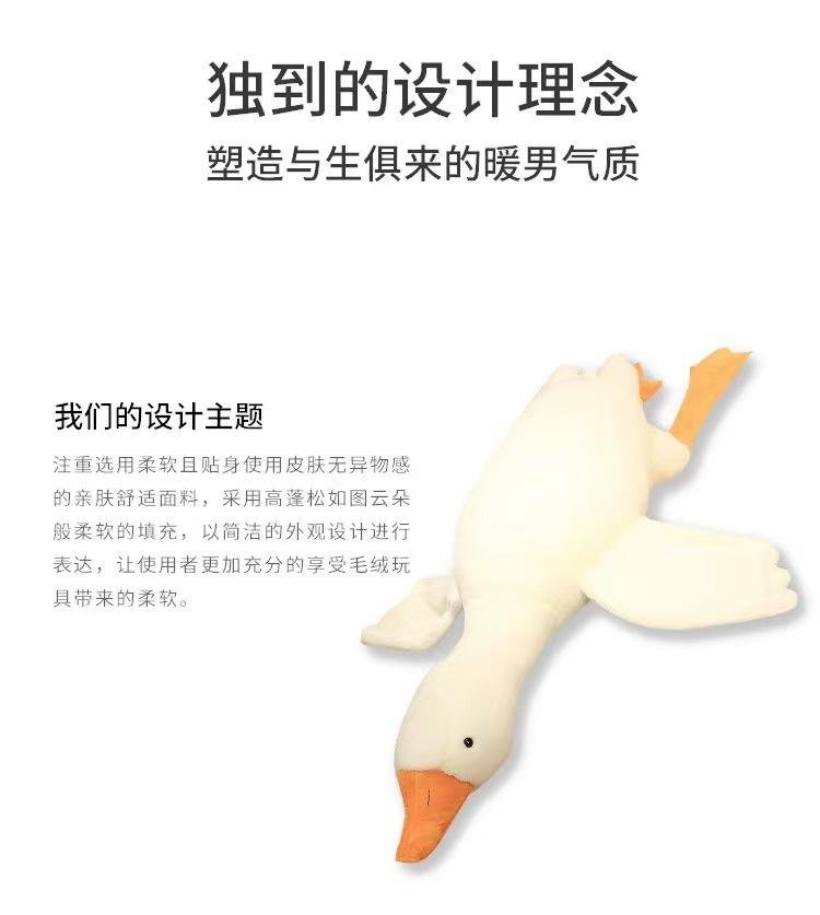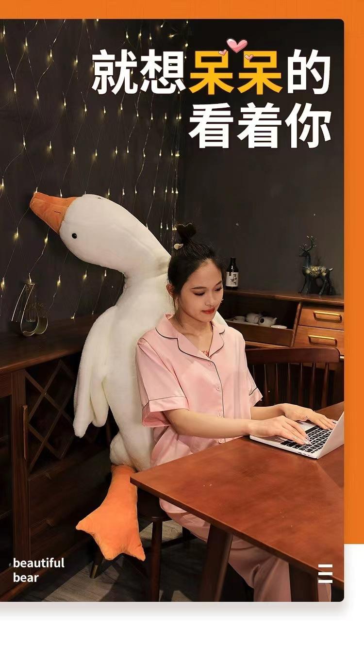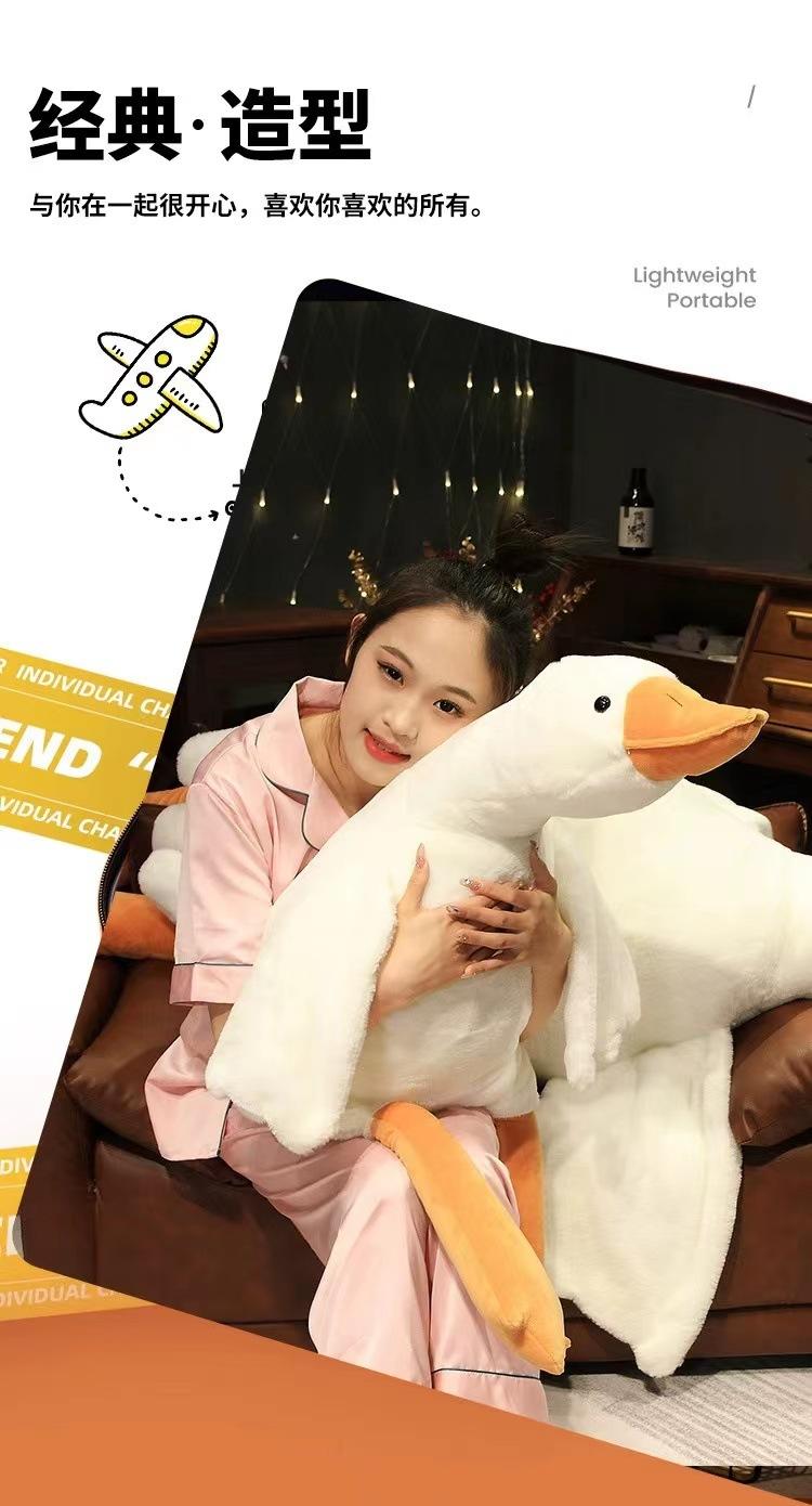 Muñeco de peluche de ganso blanco grande, famoso en Internet. Almohada de escape de ganso grande. Almohada para dormir. Muñeco de peluche durmiendo en la cama.