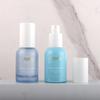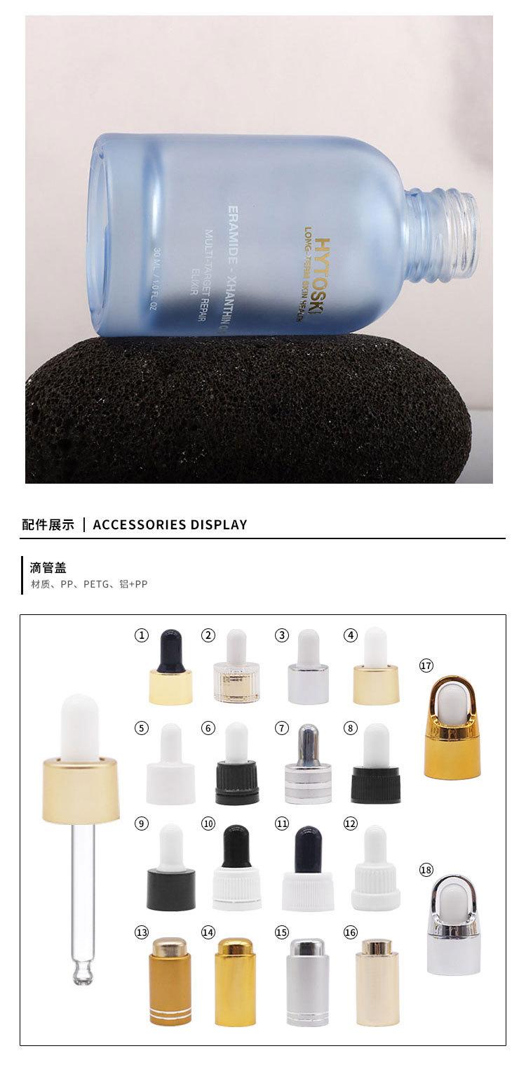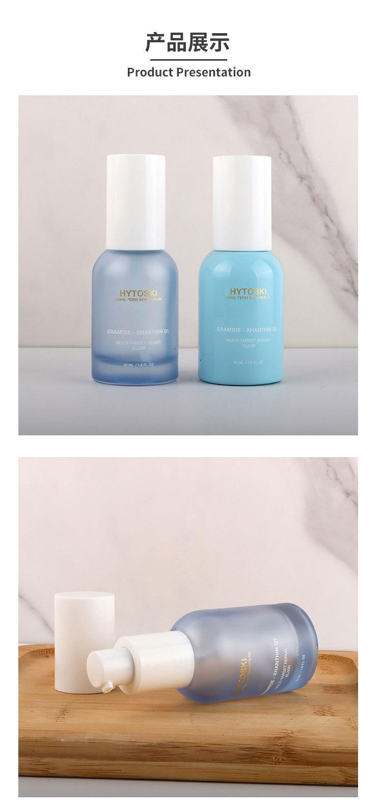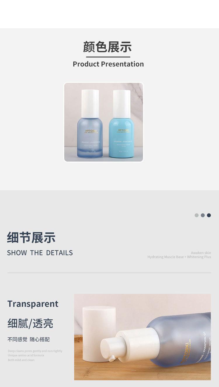 Botella de spray transparente de 30 ml, con cabezal de bomba, para loción, base de vidrio, esencia de leche y agua. Material del envase:
