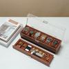 Caja de exhibición multifuncional para colección de almacenamiento de relojes y gafas de 3 posiciones con grano de madera de nogal negro, versión retro al por mayor.