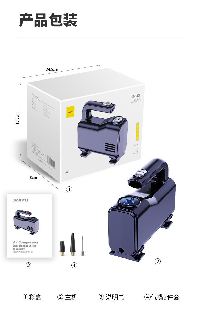 5Equipado con un juego completo de boquillas de inflado, se puede utilizar para inflar neumáticos, botes de goma, cojines de aire, juguetes inflables, pelotas y muchos otros propósitos.