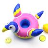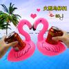 El portavasos de flamenco mide 18 cm de largo y 18 cm de alto cuando está completamente inflado, y el portavasos tiene aproximadamente 8 cm de diámetro.