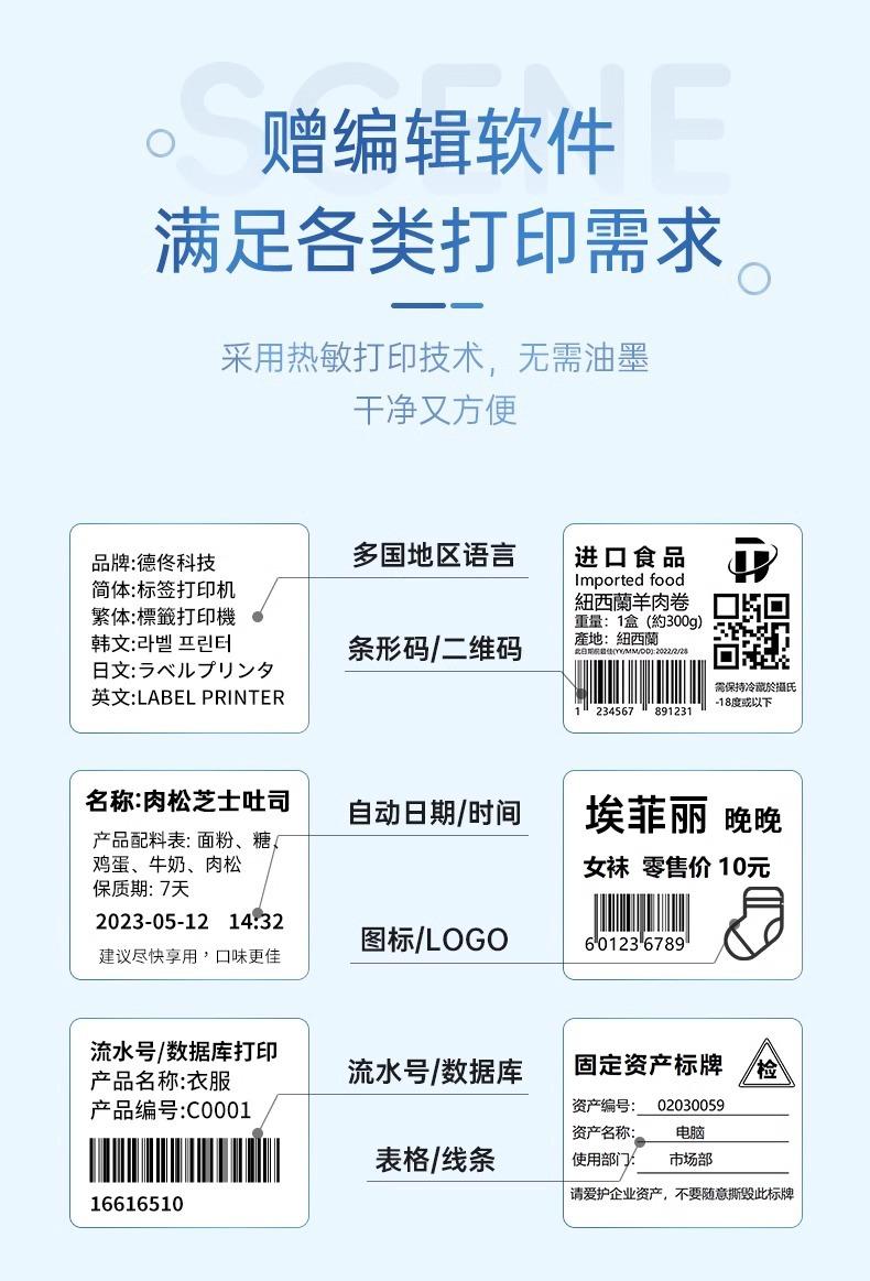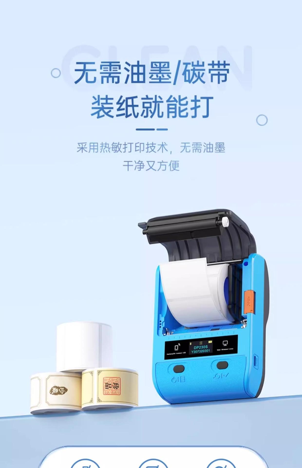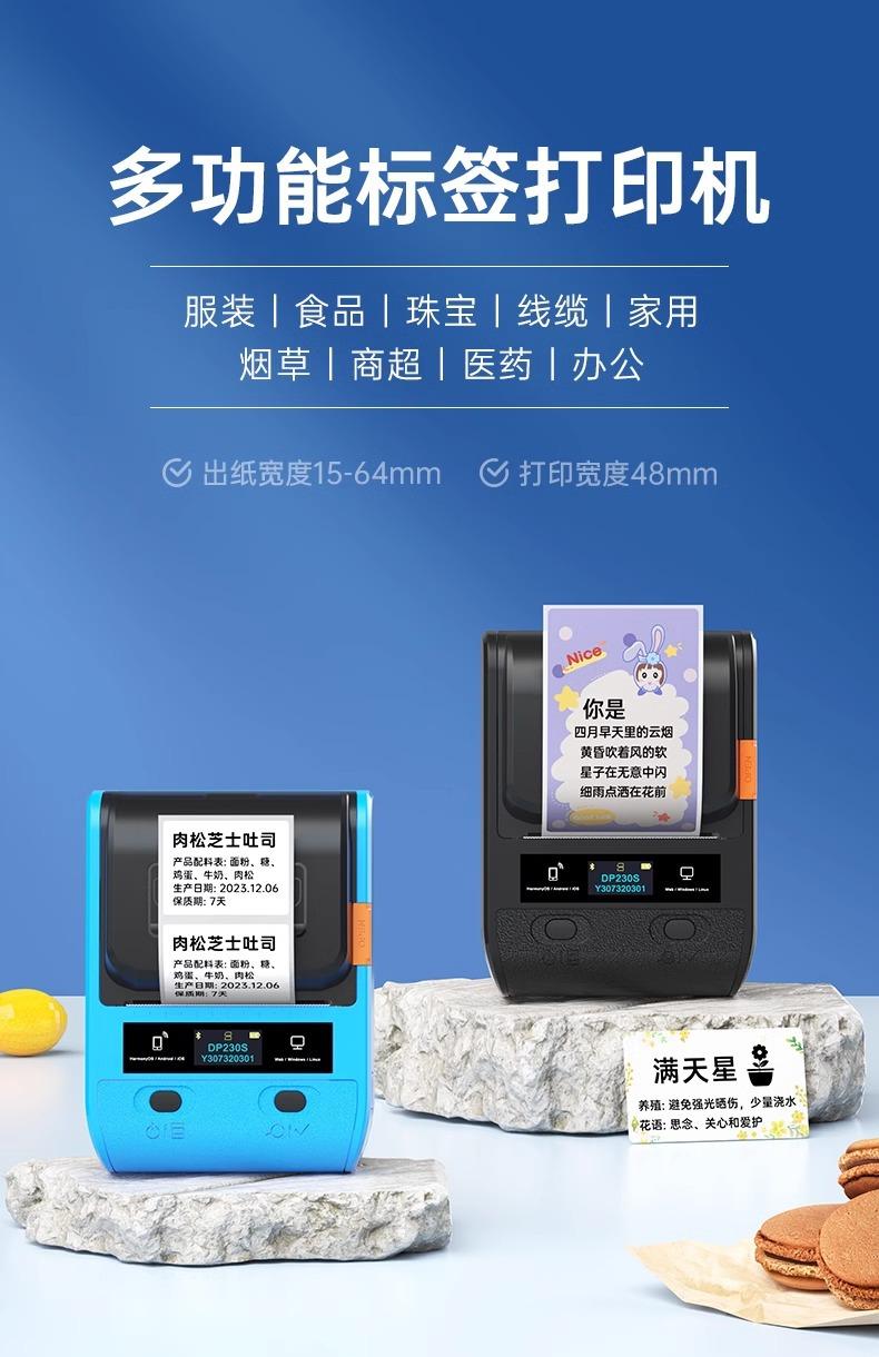 Impresora de etiquetas multifuncional DP230S, para ropa, alimentos, etiquetas de precio transparentes, certificados, joyas, códigos QR