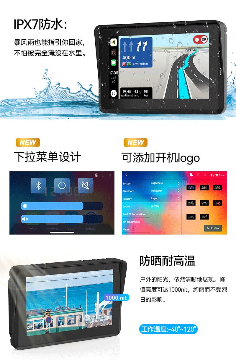 F133 System Overseas Edition Motorcycle Navigation with Carplay Android Auto