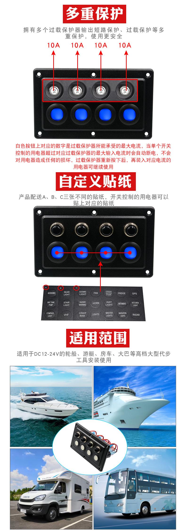 [Ámbito de uso]: Adecuado para instalación y uso en barcos, yates, vehículos recreativos, autobuses y otros medios de transporte de alta gama a gran escala
