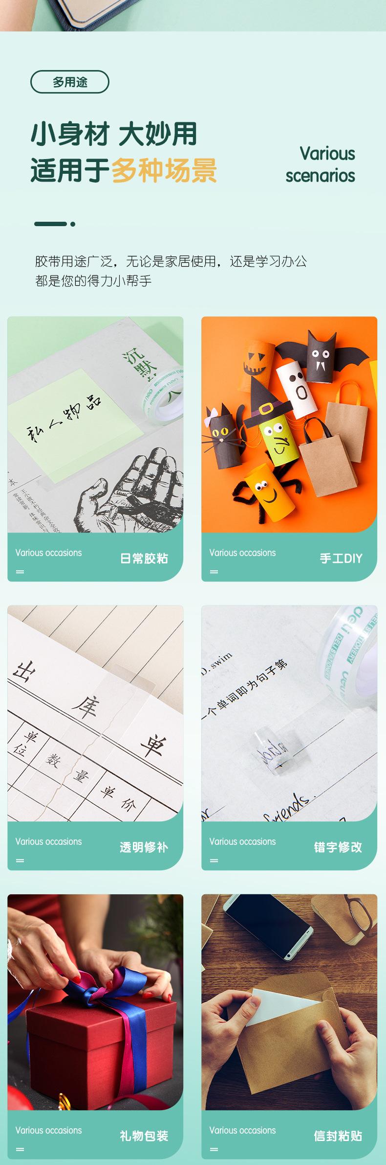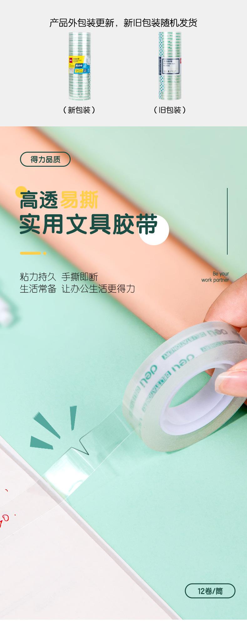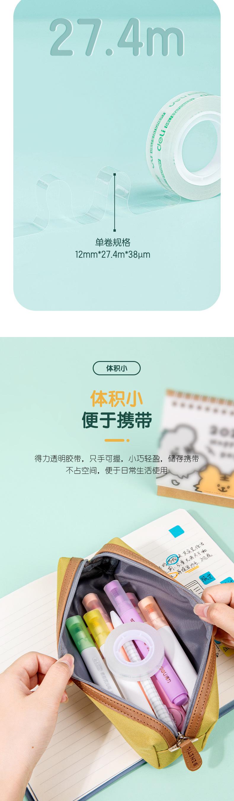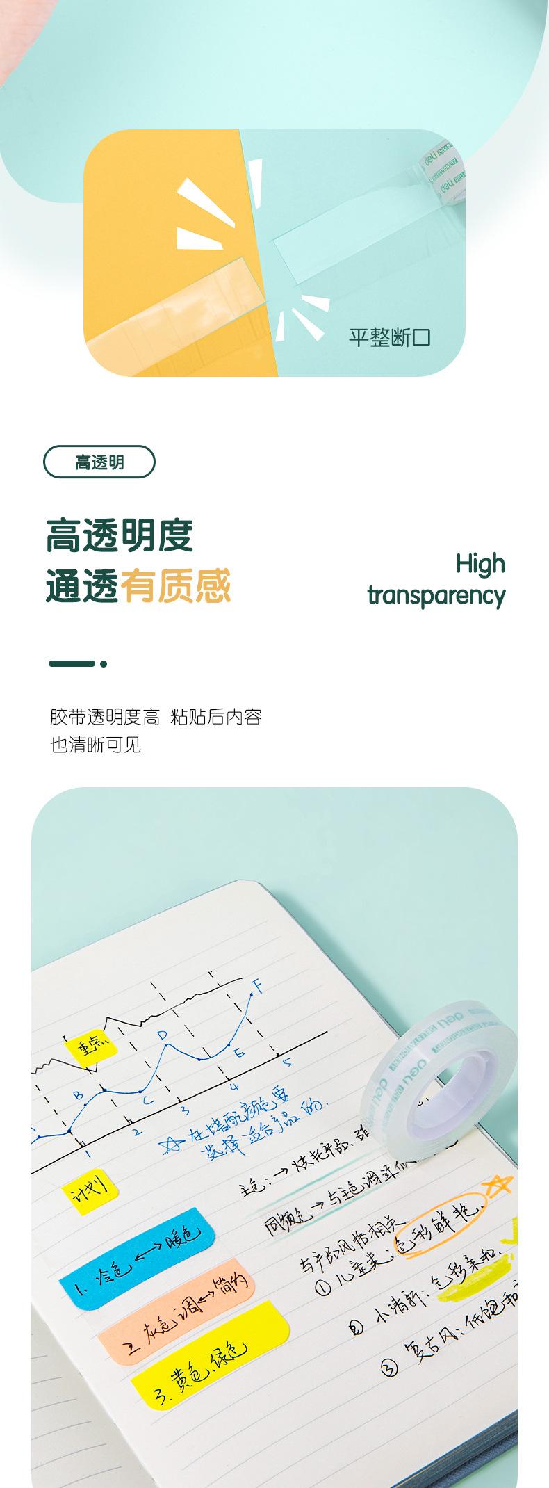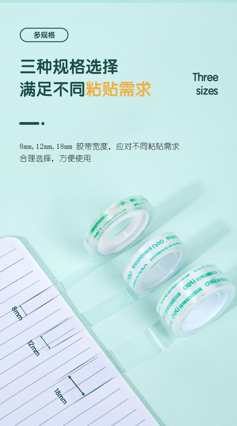 Deli Stationery 30015 Cinta de Papelería Transparente de Alta Transparencia Fácil de Rasgar 12 mm Cinta para Estudiantes 12 Rollos/Tubo Cinta