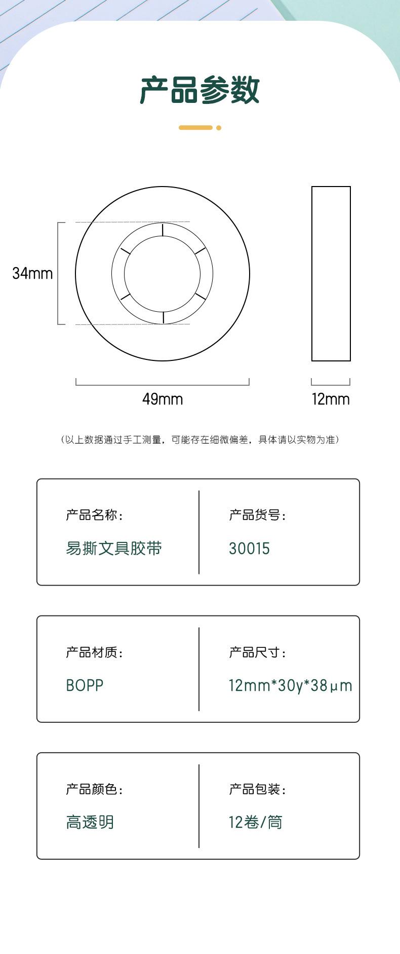 Deli 30015 stationery tape 12mm * 30y * 38um(12 rolls/tube)