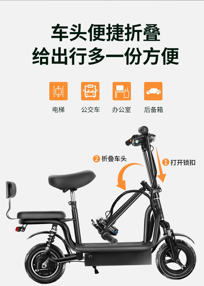 Coche de batería pequeño para adultos saliendo a comprar verduras en nombre de Resistencia de paso Scooter eléctrico de larga duración Scooter conmutador para padres e hijos para el hogar