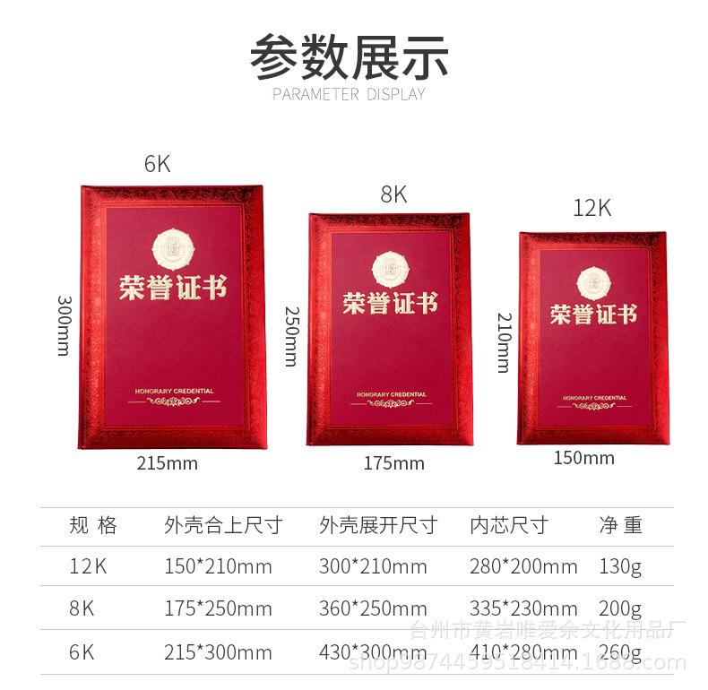12K Honor Certificate + Inner Page, 8K certificate of honor + inside pages, 6k certificate of honor + inner pages