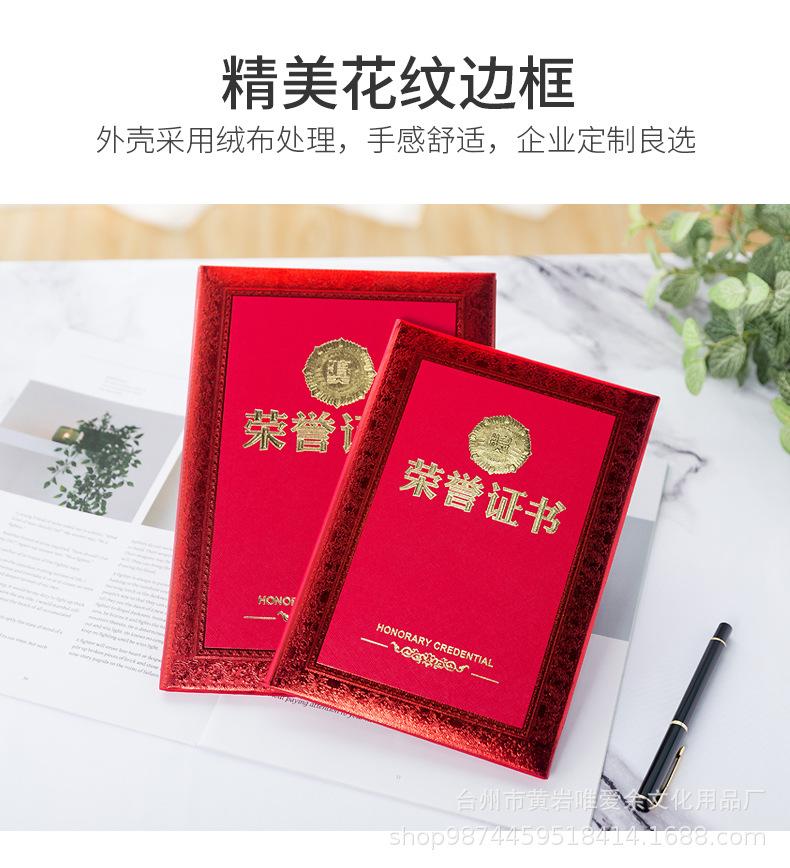 Certificado de Honor Carta de Nombramiento Premio de Protección Shell Premio Premio a la Capacitación Destacada del Personal Certificado Cubierta de Núcleo Interno A4 Piel