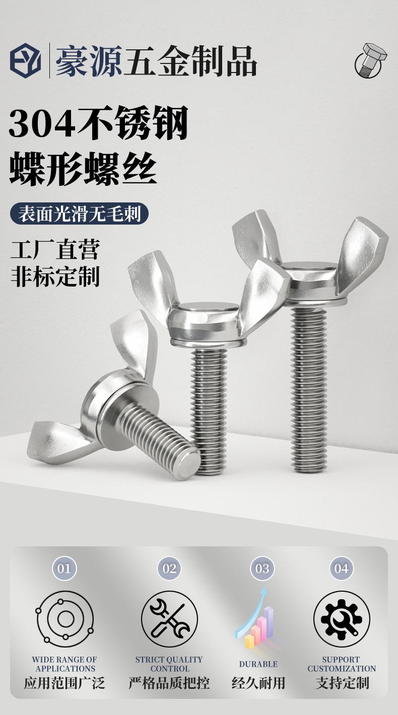 Tornillo de mariposa de acero inoxidable 304, tornillo de mano con forma de cuerno M3M4M5M6M8M10, venta al por mayor de fábrica