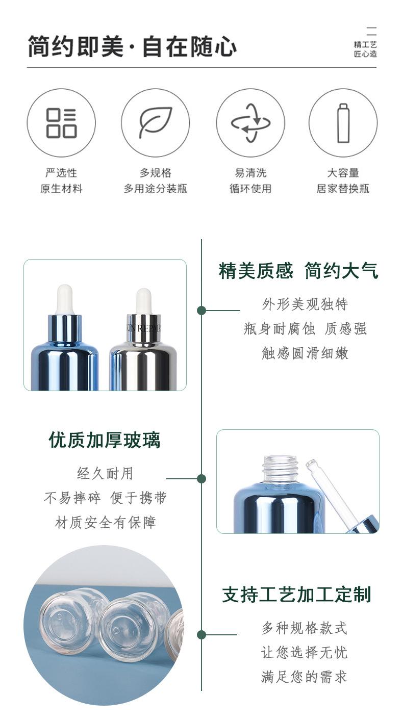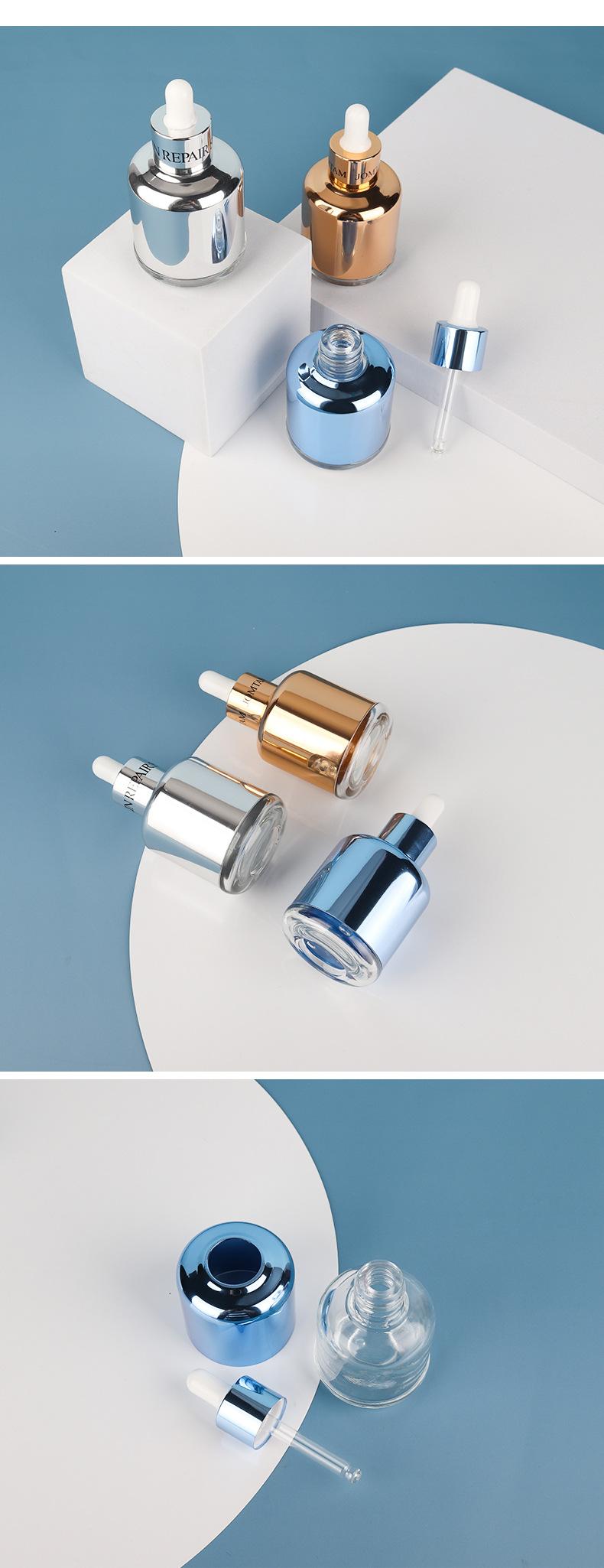 Botella de vidrio para líquido esencial de 60 ml con cubierta de hombro de aluminio electroquímico de gran venta, material de embalaje de botella de vidrio para líquido para el cuidado de la piel, botella de 60 ml para líquido de esencia
