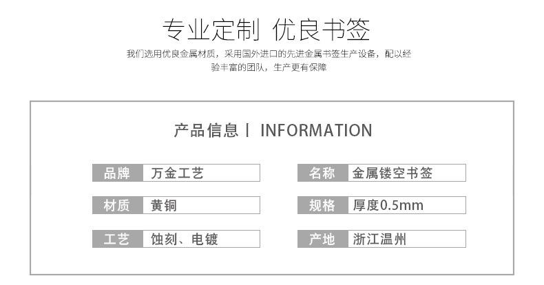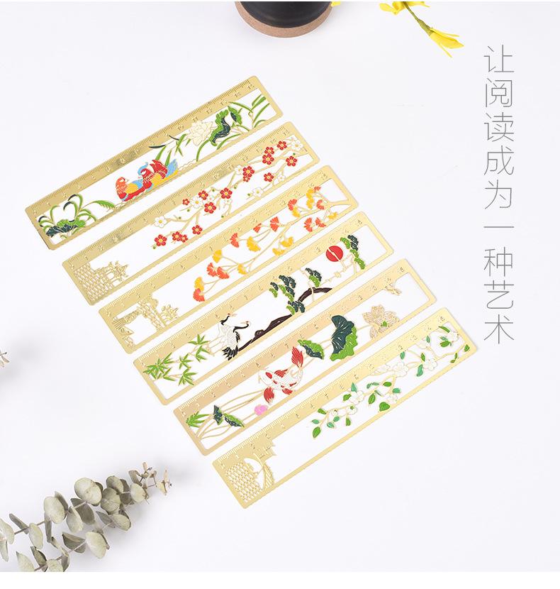 Marcapáginas de metal hueco con escala, regla creativa, marcador de metal clásico personalizado