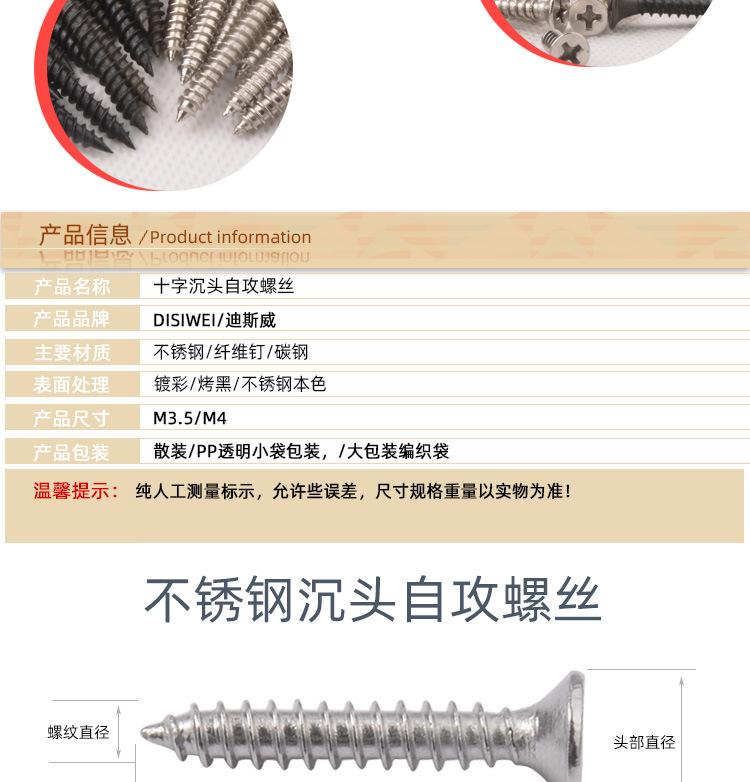 Disway Tornillos Autoperforantes de Cabeza Plana Galvanizados de 4 mm Tornillos Autoperforantes de Cabeza Avellanada Cruz Acero Inoxidable Clavos para Tablarroca Clavos para Placa de Fibra