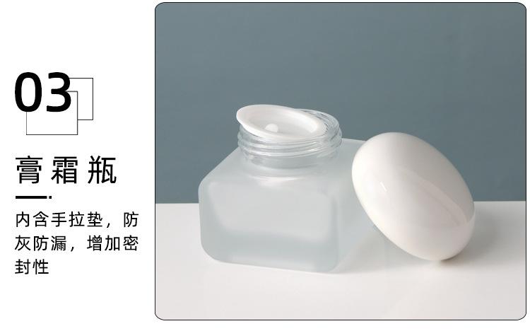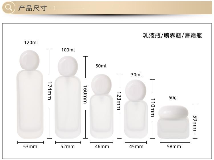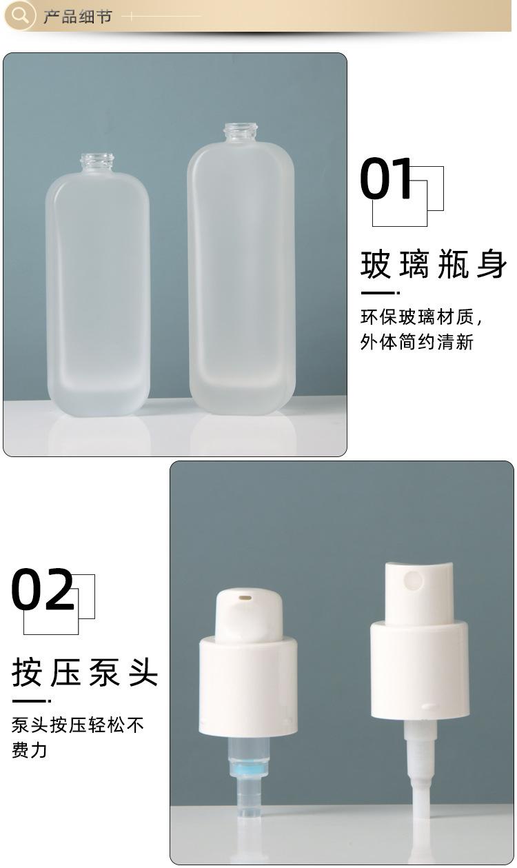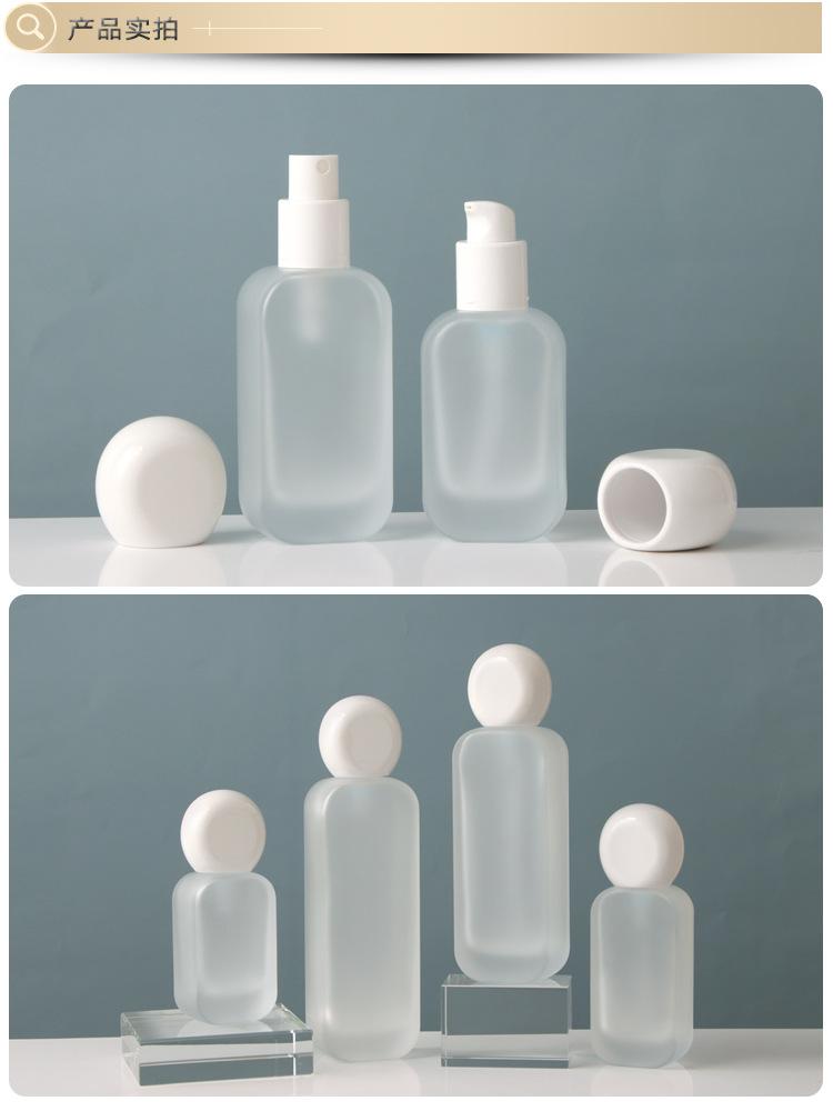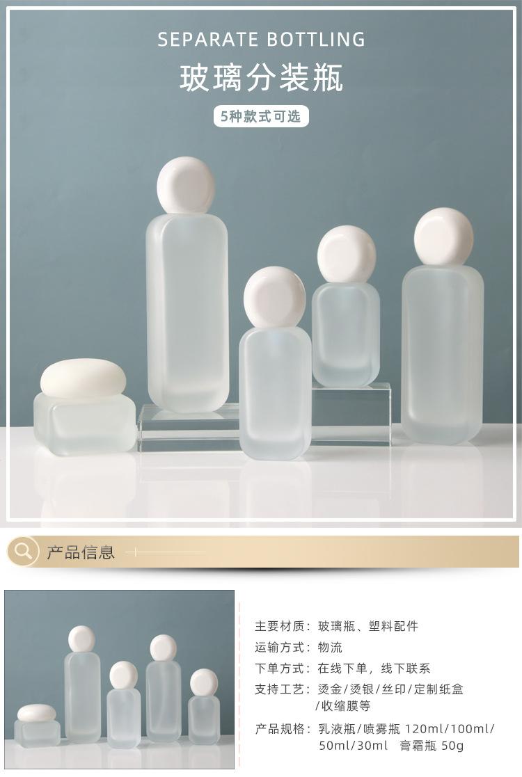 Nuevo subenvasado de productos para el cuidado de la piel, botella de prensa de 50 ml, loción de agua, esencia, material de envasado cosmético, botella de vidrio de crema esmerilada