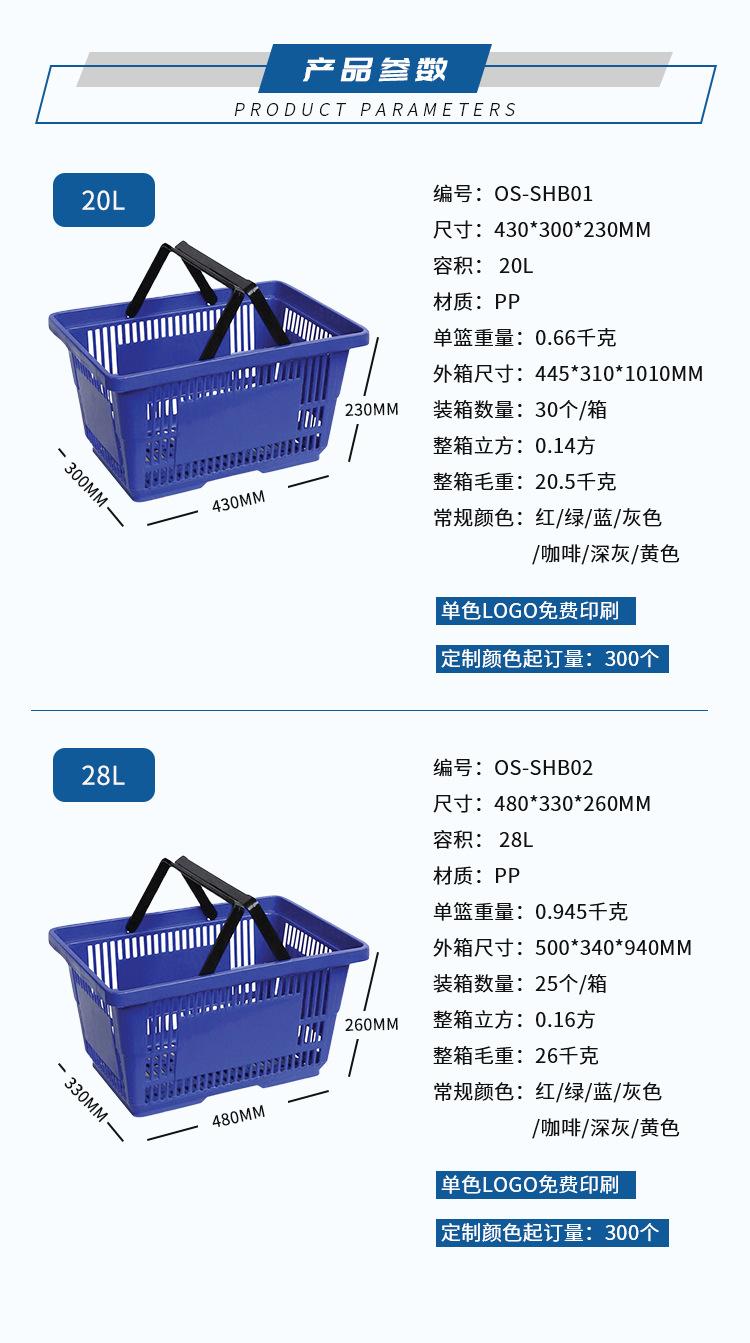 Cesta de compras de supermercado Cesta de mano para tienda de conveniencia o tienda de snacks Gruesa grande doble asa