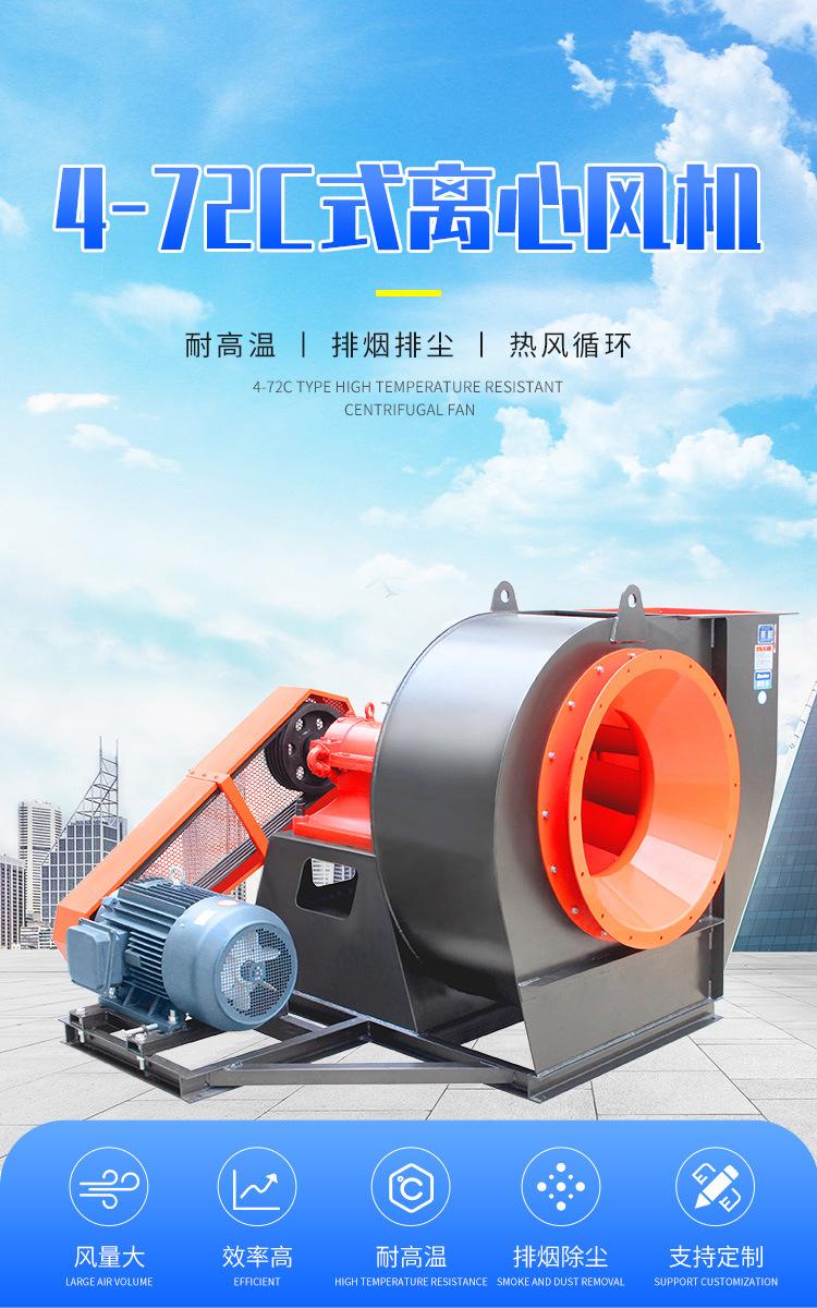 El modelo básico es 4-72, que puede transportar aire y otros gases que no sean autoignitivos, inofensivos para el cuerpo humano y no corrosivos para el acero. No se permiten sustancias pegajosas en el gas, y el polvo y las partículas duras contenidas no superan los 150 mg/metro cúbico. La temperatura del gas no debe exceder los 80 °C. El ventilador tiene buen rendimiento aerodinámico, funcionamiento equilibrado, baja vibración, alta eficiencia y larga vida útil. Se utiliza ampliamente en la ventilación interior de empresas industriales y mineras, edificios grandes, hoteles y restaurantes.