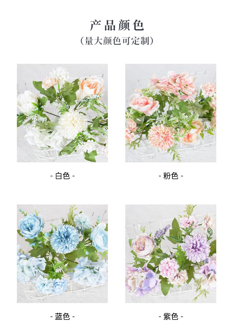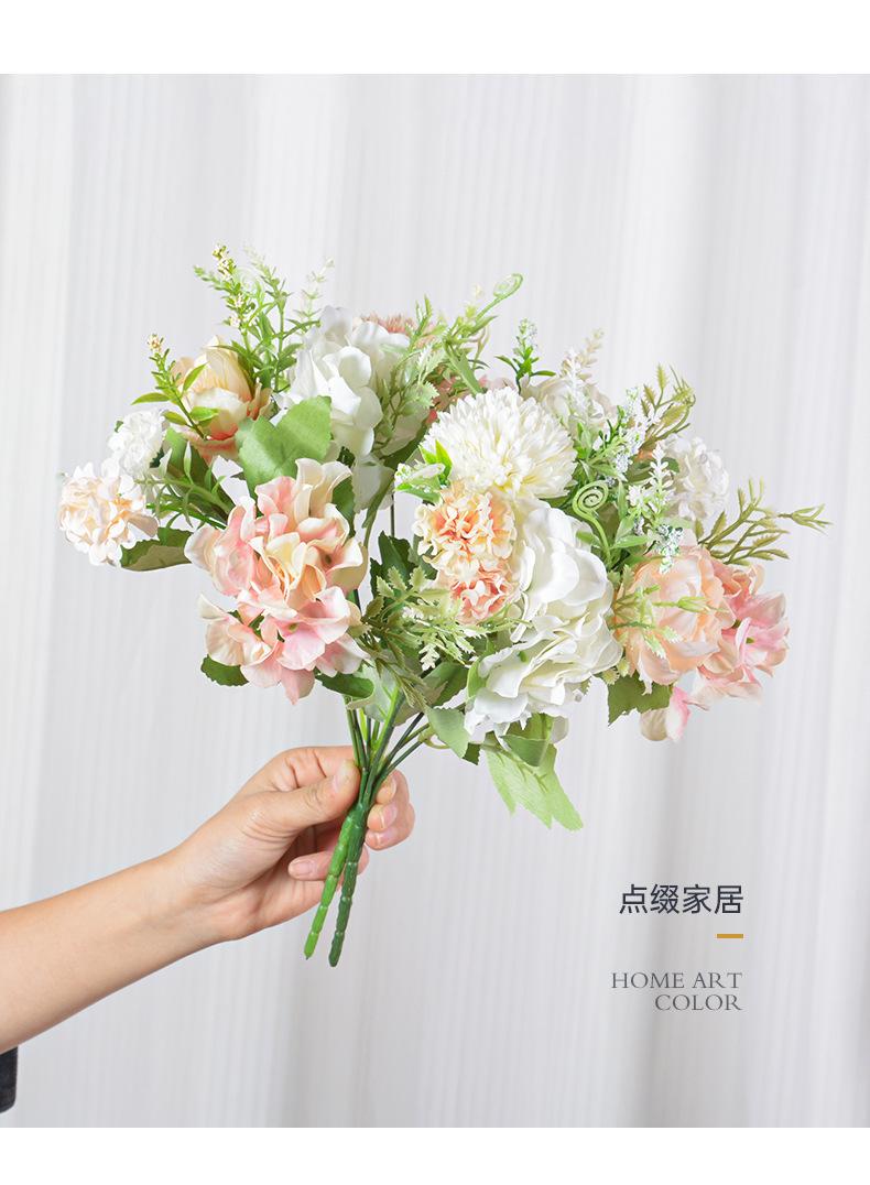 Ramo de Flores de Seda Artificial Combinación Simulación Hortensia Hotel Boda Peonía Hogar Simulación Flor de Jarrón Rosa