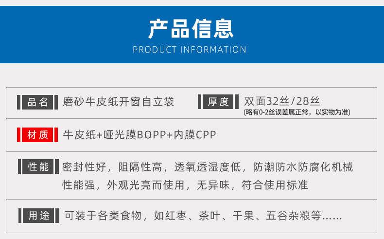Yellow; 9*14 3 frosted kraft paper window opening self-standing bag 28 silk; matte film/kraft paper/CPP