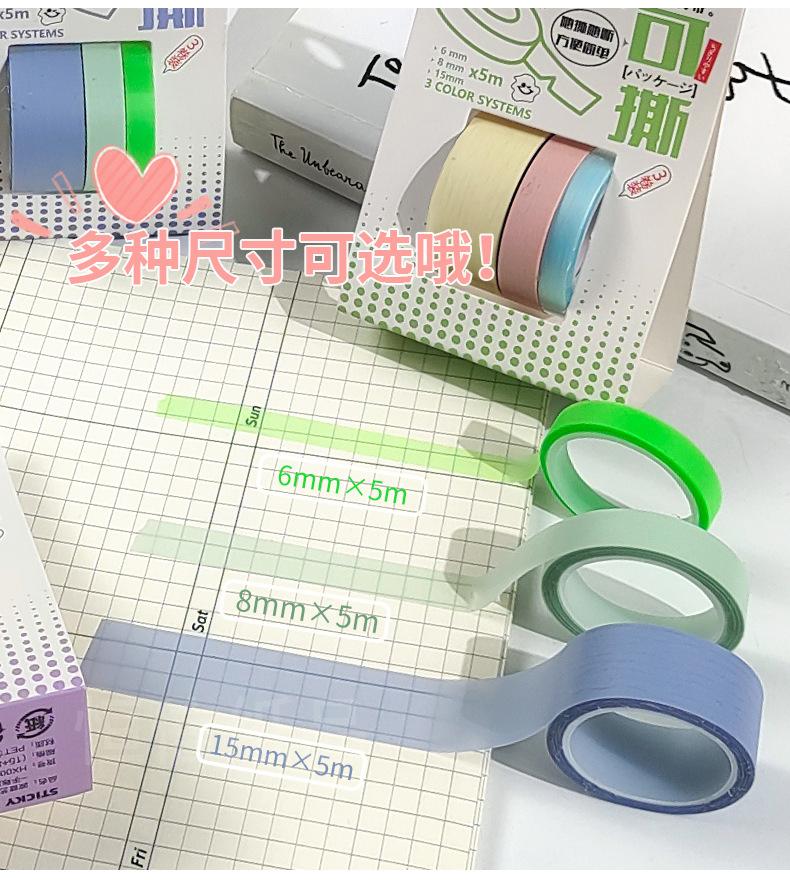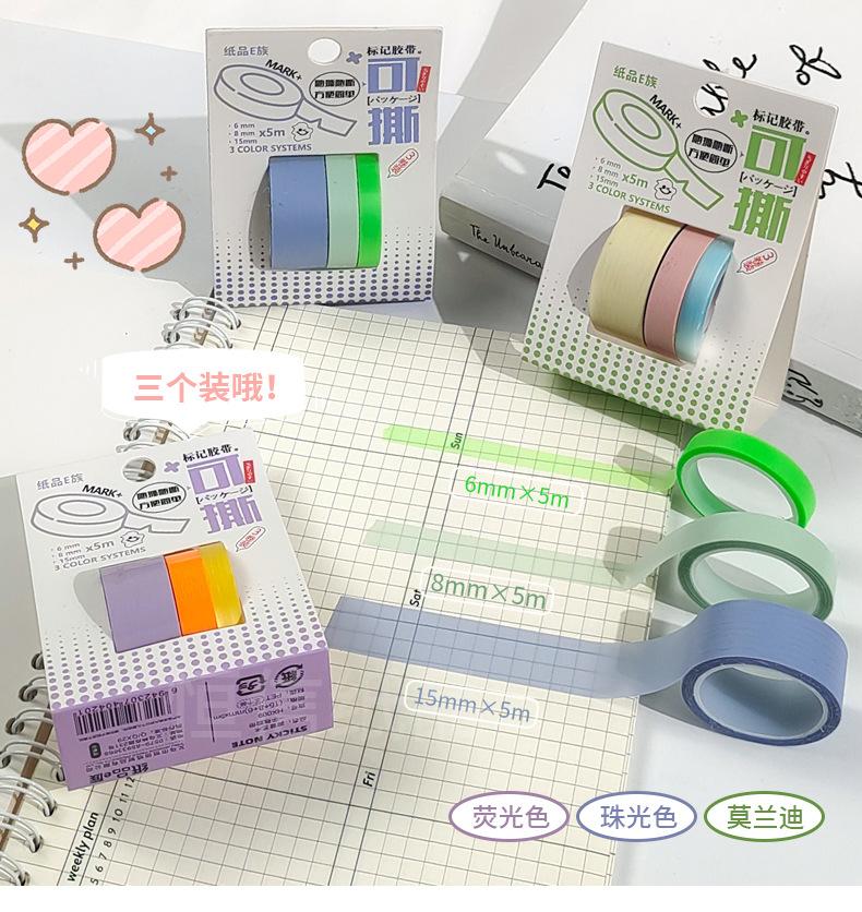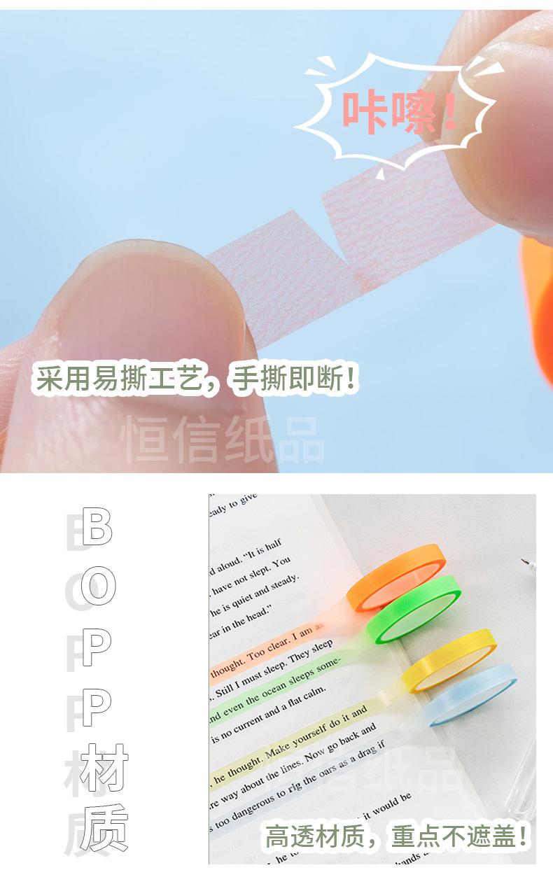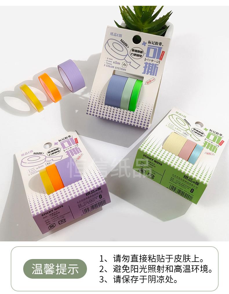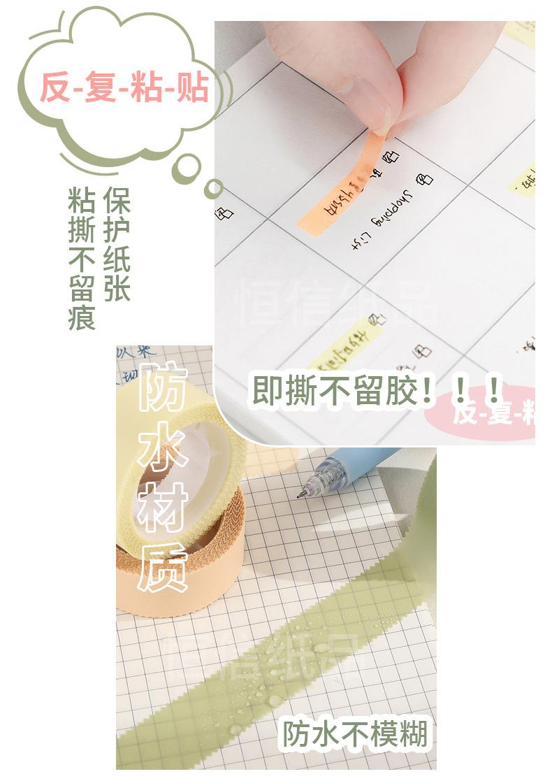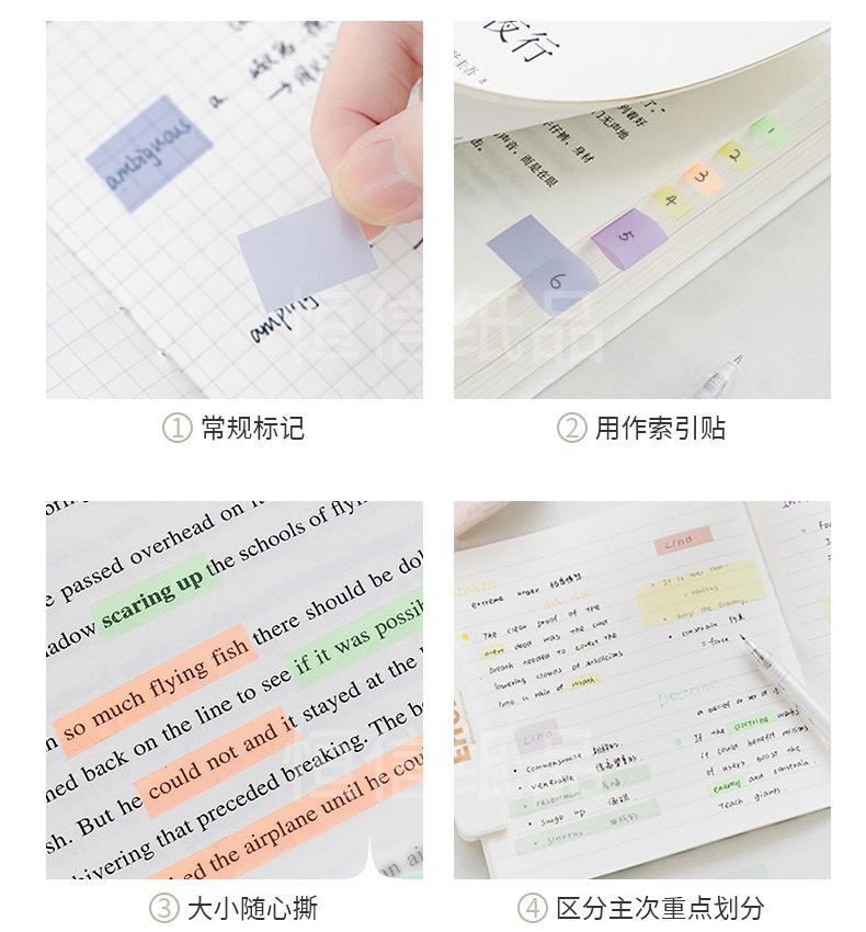 Cinta adhesiva de color fluorescente desgarrable, papelería para estudiantes, nota adhesiva transparente, papel de notas de color sólido, venta al por mayor de fábrica en stock