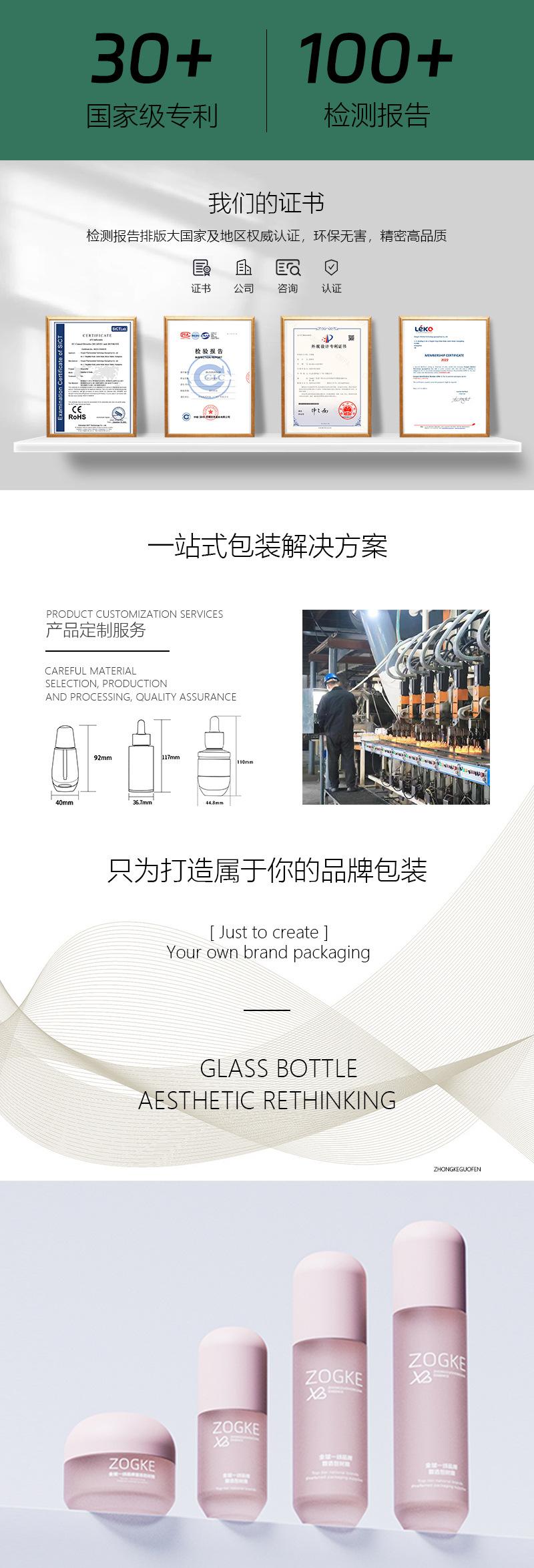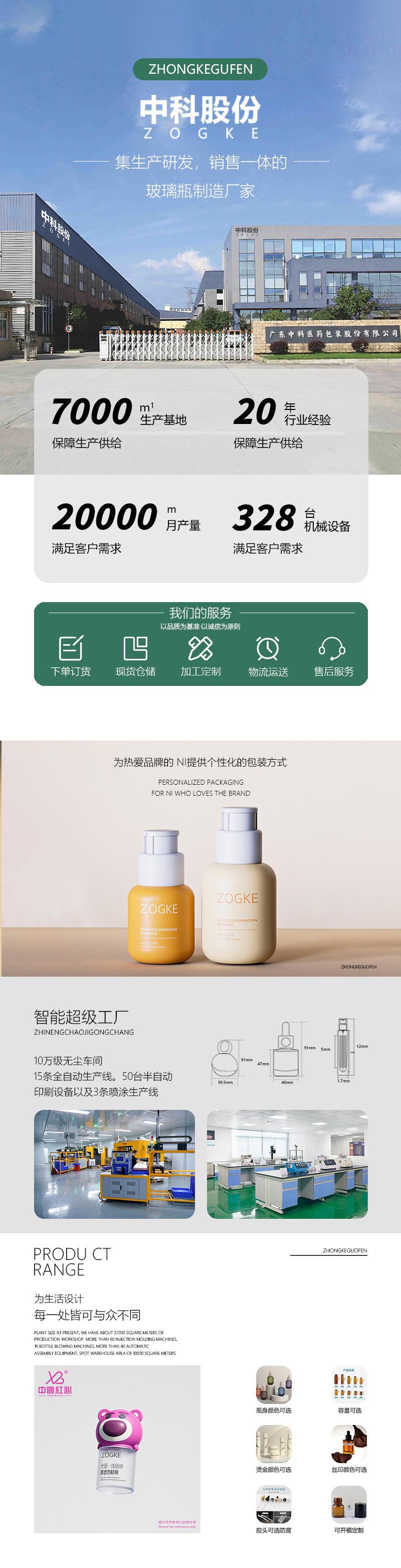 30ml (transparent); glass; transparent lotion bottle with pump head + purple ball cover