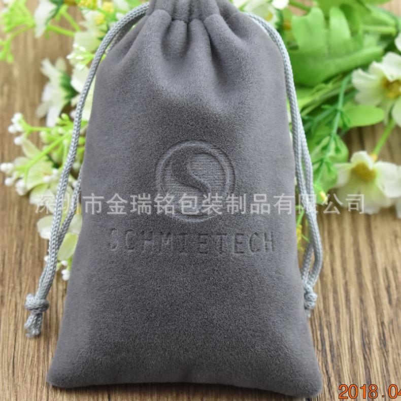 Exquisita bolsa de franela gris 90*140mm bolsa de franela para joyería bolsa de franela con cordón